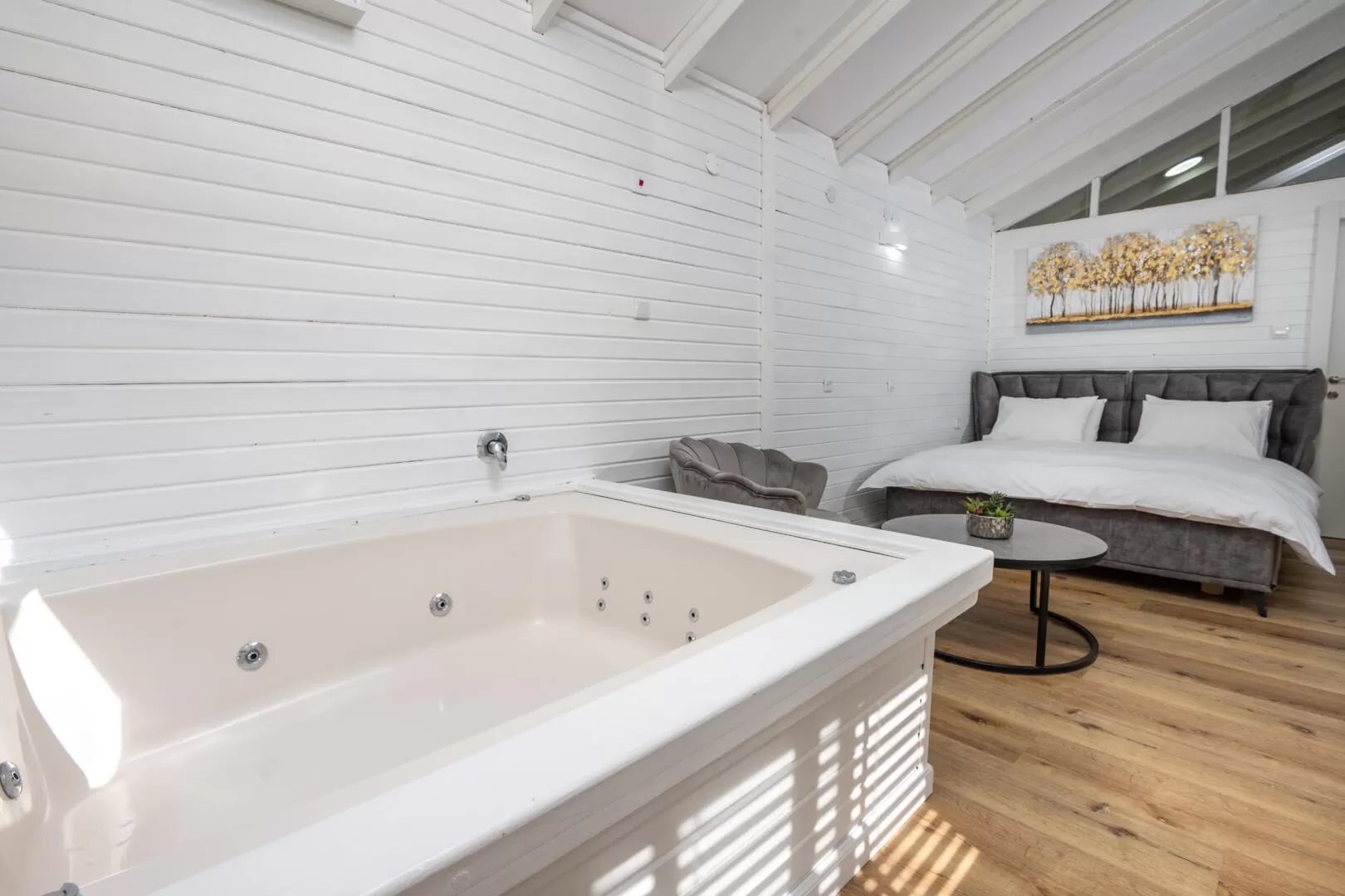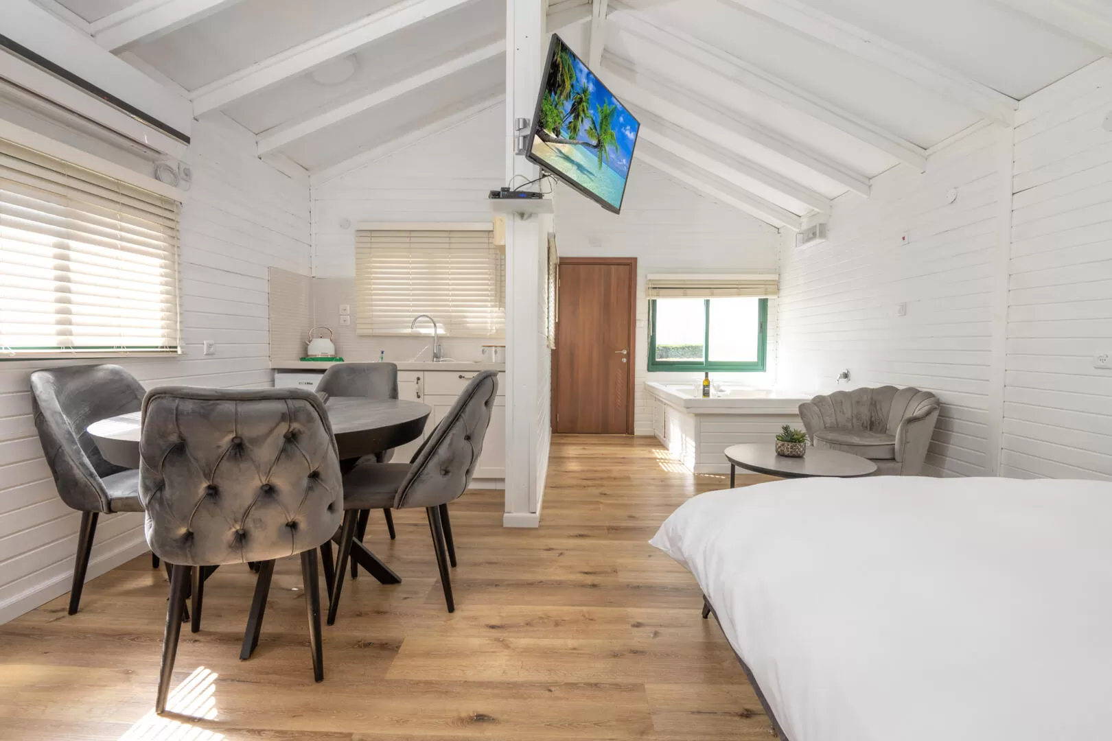 אווירת מושב שקטה ופסטורלית בחוץ, ובקתות מודרניות ומפנקות בפנים. המתחם מעולה למשפחות שמעוניינות להשכיר את כולו, או לקבוצות חברים שמחפשים מרחב פרטי לחופשה איכותית שיש בה את כל הפסיליטיס שצריך.