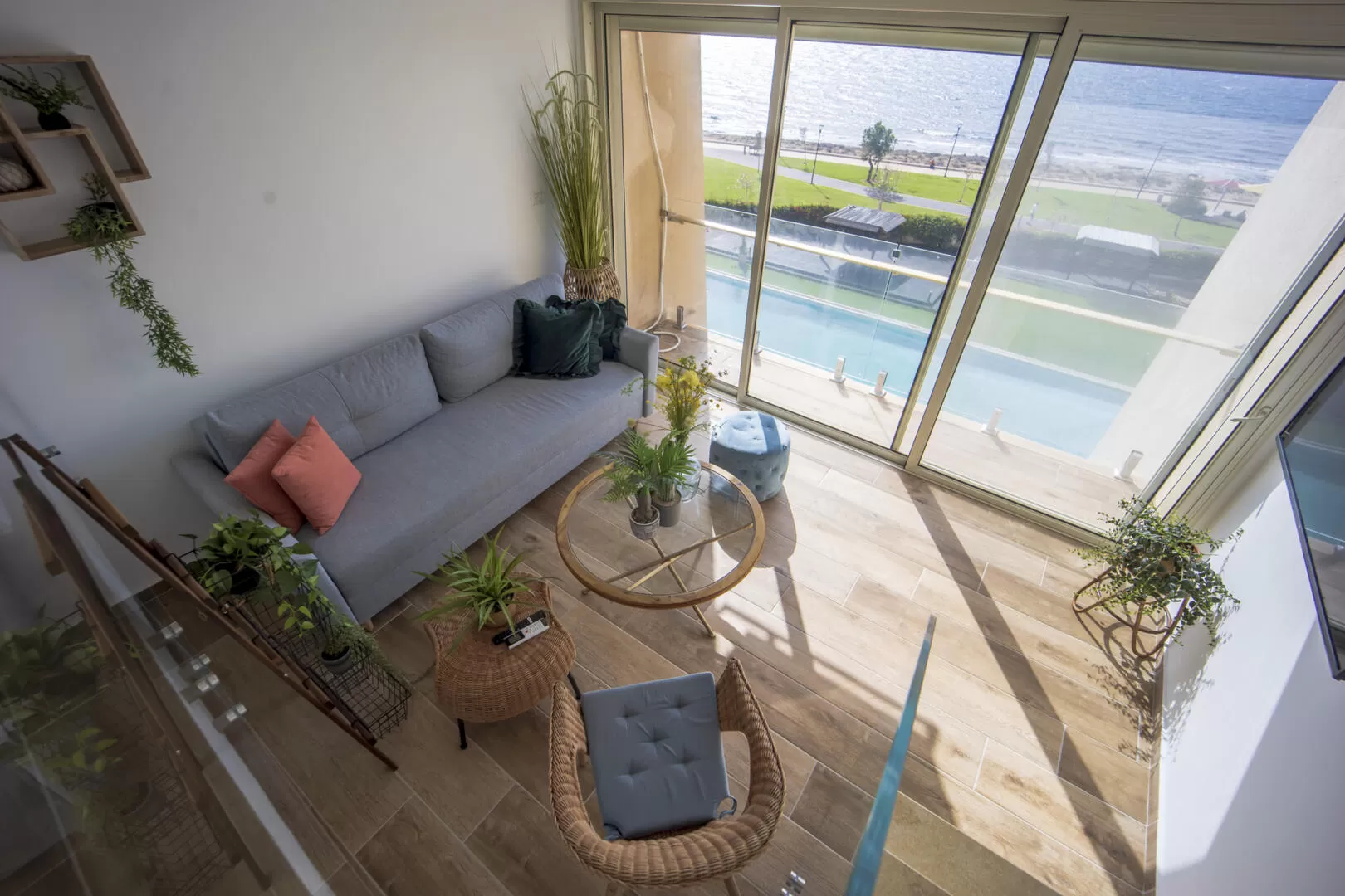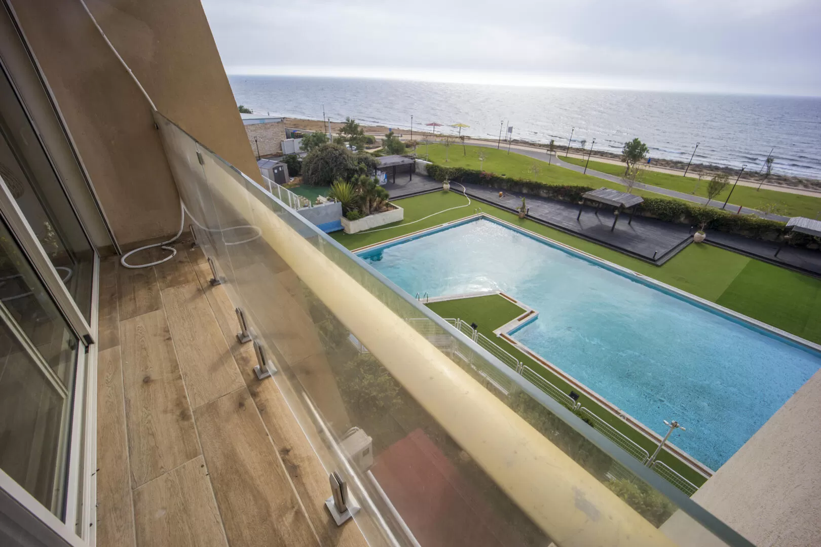 הדירה ממוקמת בנהריה בקו ראשון לים, בקומה הרביעית של מגדל דירות אירוח. הבונוס של הדירה הזאת הוא ללא ספק הנוף הפתוח לים, ולא פחות מזה אל הבריכה הגדולה שהמרפסת "תלויה" ממש מעליה.
