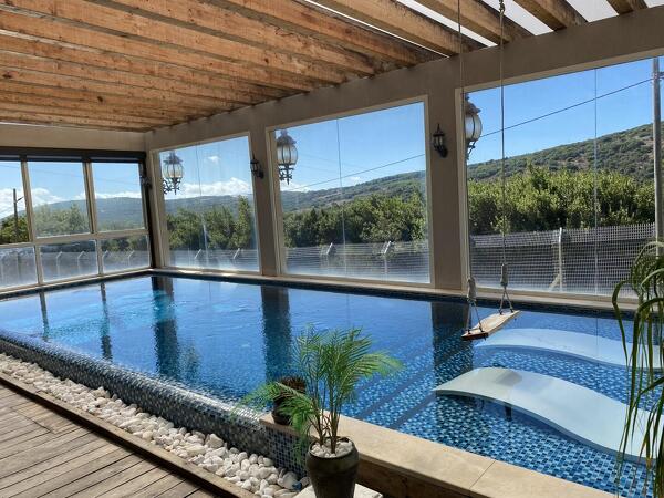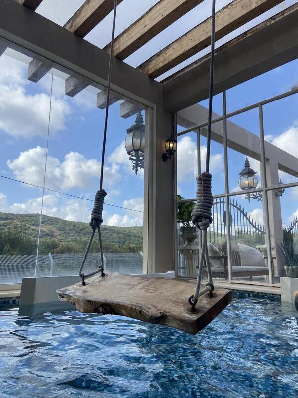 נסיה מאובזרת ומעוצבת באופן מוקפד, החל מרצפת השיש הבוהקת ועד לשנדלירים המלכותיים. במתחם החוץ של הסוויטה תהנו מבריכה פרטית מקורה ומחוממת כל השנה עם נדנדה שתלויה מעליה ומיטות שיזוף בתוכה (כן, בתוכה). לצידה ג'קוזי ספא שקוע ברצפה ועמדת ברביקיו. אזור הבריכה כולו מוקף בחלונות בלגיים, כך שהטמפרטורה כאן נעימה תמיד, ואם תרצו תוכלו לפתוח אותם ולקבל קצת בריזה. בחלל הפנים תמצאו קמין עצים מפנק לחורף, מטבח מאובזר לבישול, מיטה זוגית גרנד קינג, ואמבט stand alone מרשים.