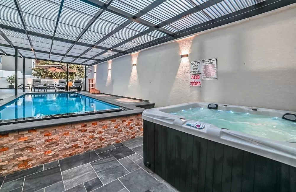 בריכה גדולה מחוממת ומקורה