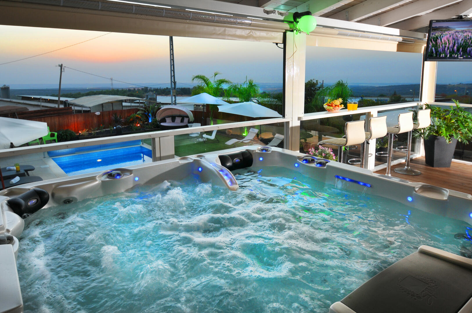 בחלל הפנים יחכה לכם מטבח שמאובזר היטב לבישול, ובאחד מחדרי הרחצה יש מקלחת זוגית עם ראש גשם כפול. במתחם החוץ יש מרפסת שניתנת לסגירה או פתיחה לפי מזג האויר ובה יש ג'קוזי ספא, פינת ישיבה נוחה, פינת אוכל, כדורגל שולחן, וטלויזיה. במפלס התחתון תחכה לכם בריכה גדולה ומחוממת בין אוקטובר למאי, שולחן פיקניק מקורה, עמדת מנגל נוחה, שולחן פינג פונג, ומגוון פינות ישיבה נוחות.