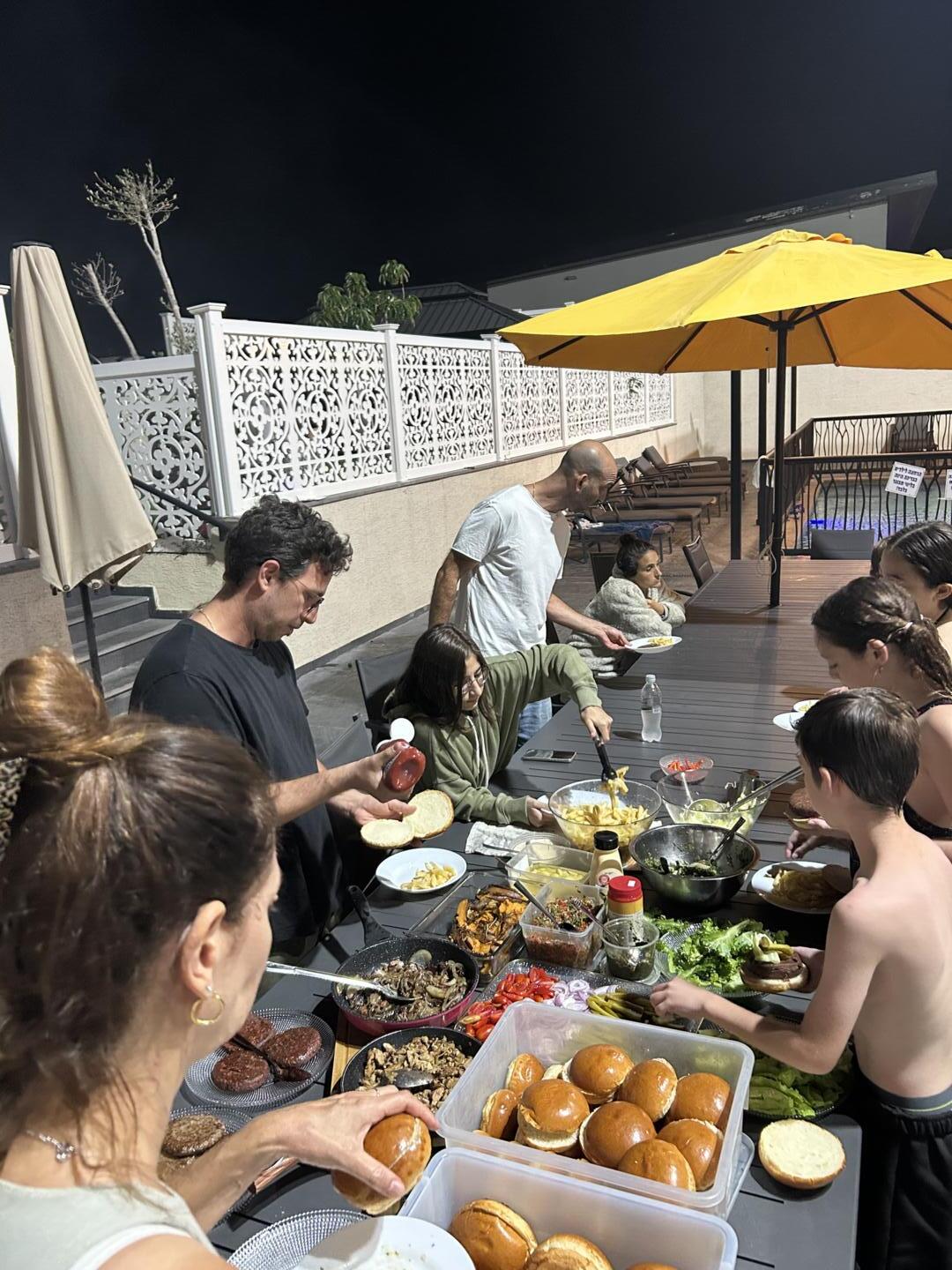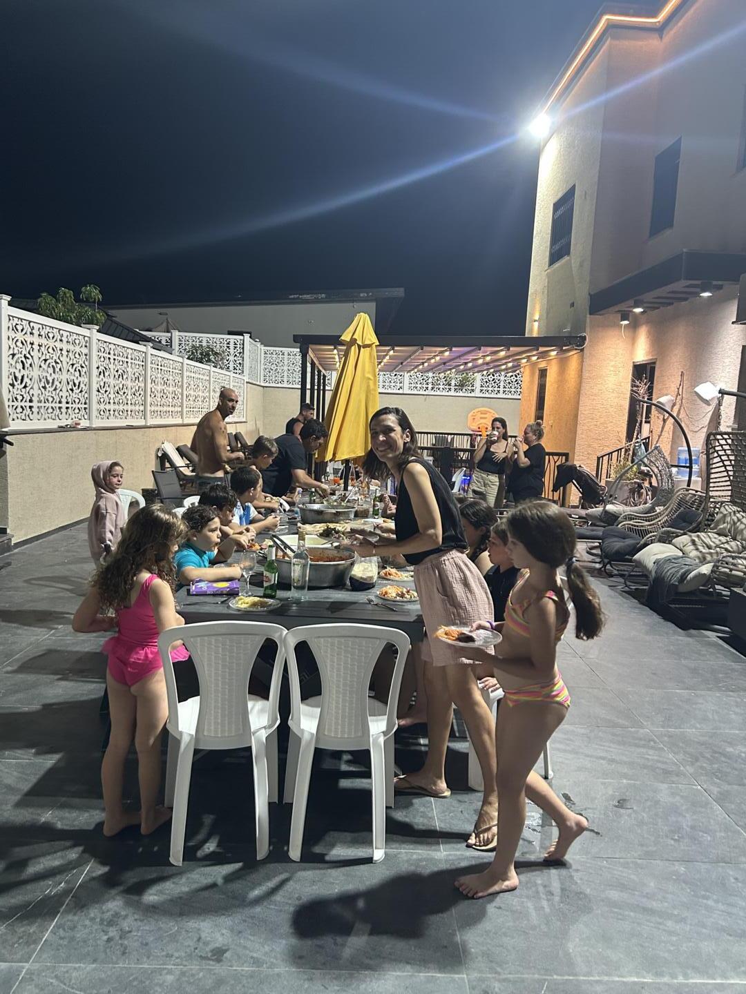 מתחם החוץ כולל שתי בריכות סופר מפנקות (אחת מהן מחוממת), שני ג'קוזי ספא, עמדת ברביקיו עם שולחן אוכל גדול בסמוך, שולחנות משחק, ושלל פינות ישיבה ורביצה, אחת מהן תחת גזיבו מפואר.