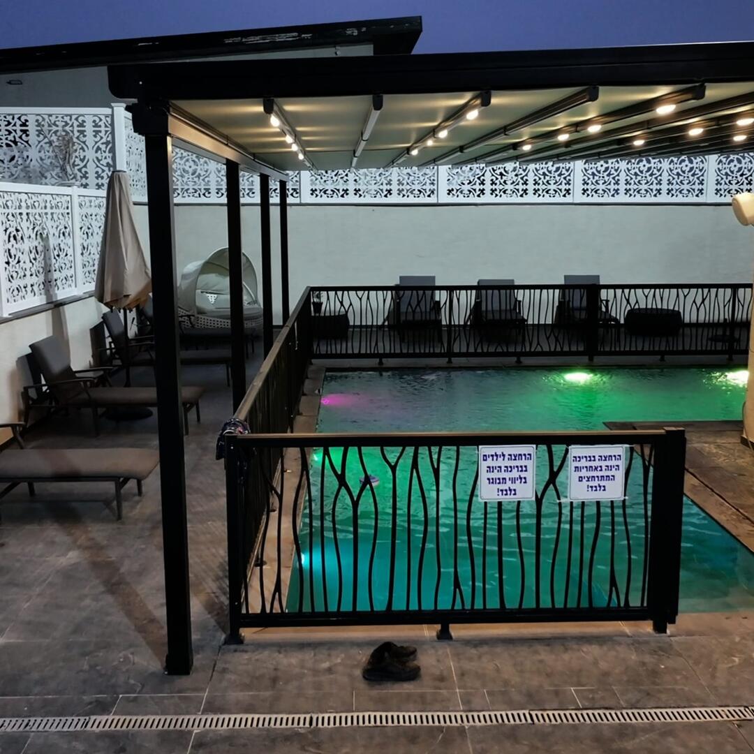 מתחם החוץ כולל שתי בריכות סופר מפנקות (אחת מהן מחוממת), שני ג'קוזי ספא, עמדת ברביקיו עם שולחן אוכל גדול בסמוך, שולחנות משחק, ושלל פינות ישיבה ורביצה, אחת מהן תחת גזיבו מפואר.