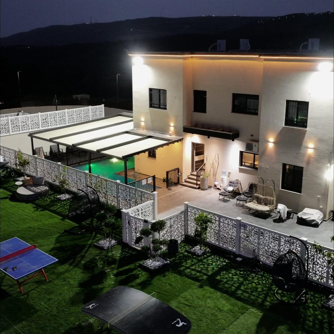 מושב יערה שבגליל המערבי, הצופה על הרי הגליל. אחוזת יערה ממוקמת בשכונת וילות בקצה היישוב, עם שביל גישה פרטי ונוף פתוח ממתחם החוץ.