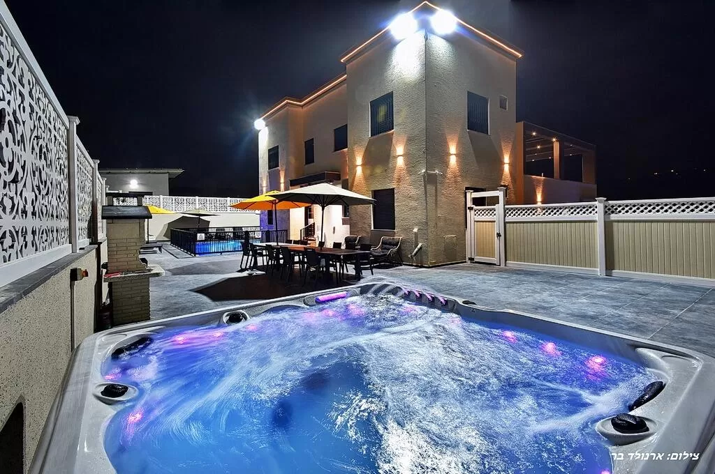 מתחם החוץ כולל שתי בריכות סופר מפנקות (אחת מהן מחוממת), שני ג'קוזי ספא, עמדת ברביקיו עם שולחן אוכל גדול בסמוך, שולחנות משחק, ושלל פינות ישיבה ורביצה, אחת מהן תחת גזיבו מפואר.