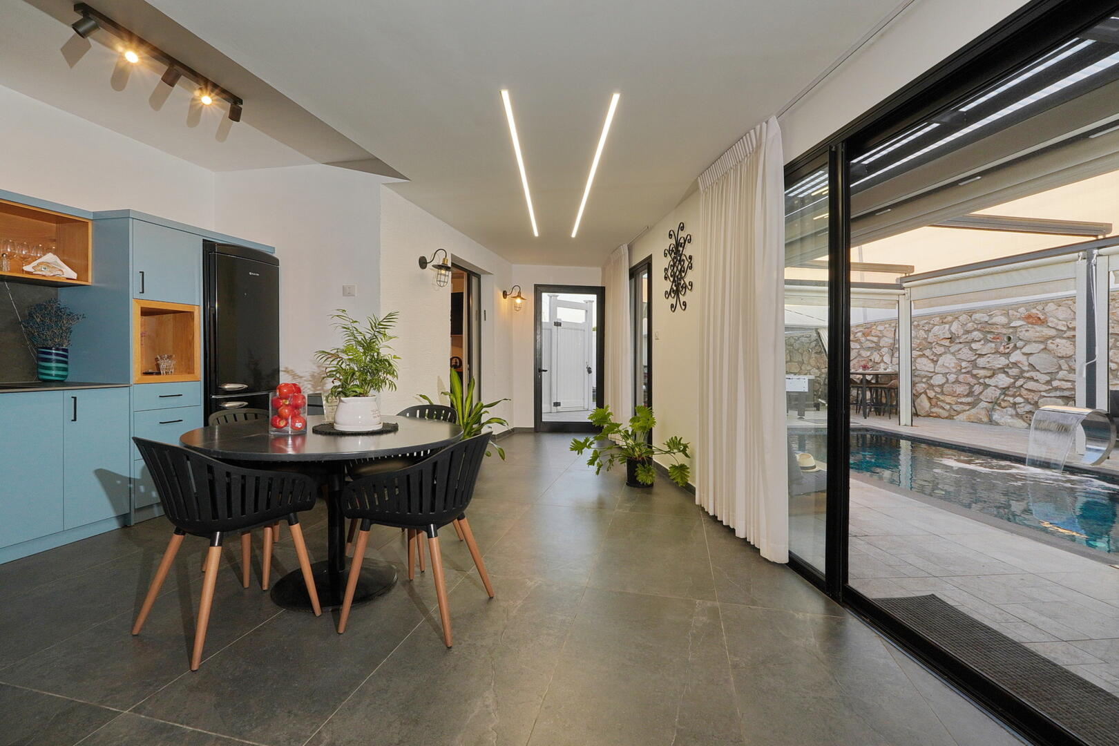 וילה של קומה אחת, מטופחת ומזמינה, ולמרות שמדובר בשכונת מגורים, כמעט ולא תרגישו כאן את השכנים. ההשקעה בכל פרט ניכרת - החל מהתכנון של המקום, דרך העיצוב הנפרד לכל חלל, וכמובן הפסילטיס המפנקים שיחכו לכם במתחם החוץ הפרטי.