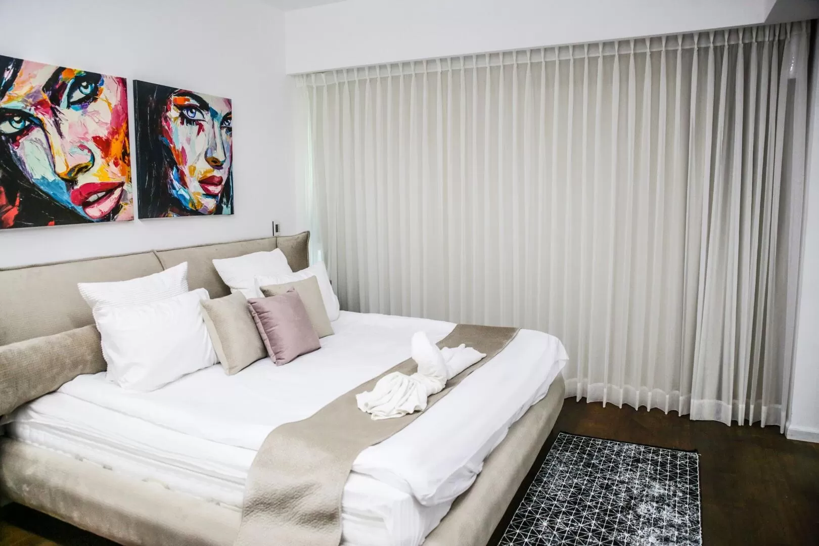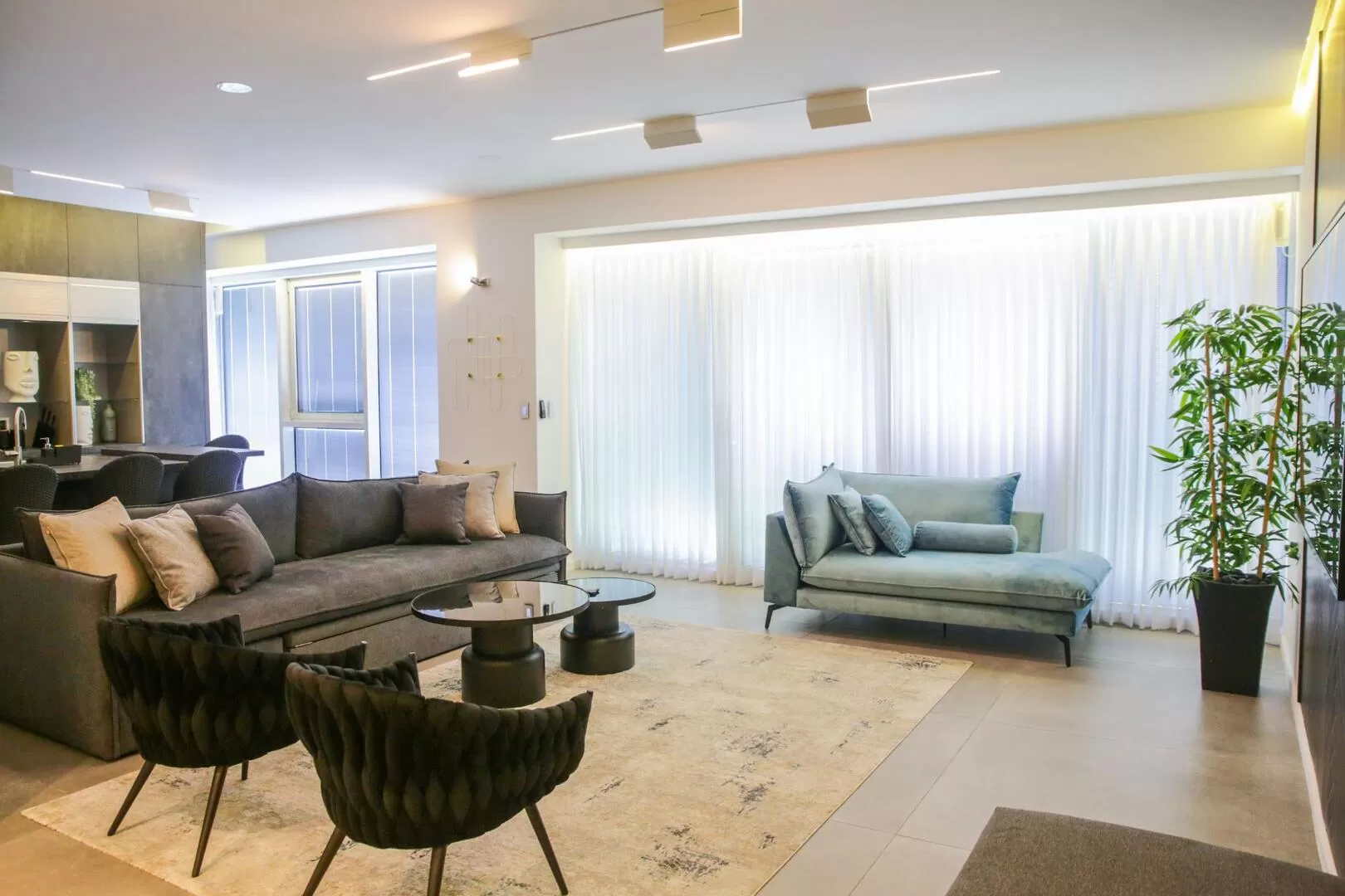 בדירה תמצאו סלון מרווח, פינת אוכל לצד מטבח מאובזר שמתאים לבישול מלא. יש כאן 3 חדרי שינה מצויידים במצעים ומגבות (בחדר המאסטר יש מיטת גרנד קינג), 2 חדרי רחצה עם ראשי גשם סופר מפנקים, ומכונת כביסה ומייבש לשימושכם. התאורה והמיזוג בדירה מופעלים בשליטה חכמה, וגולת הכותרת כאן היא מרפסת שצופה לנוף מטורף ובה פינת ישיבה. בבניין יש בריכת שחיה משותפת לרחצה בעונה.