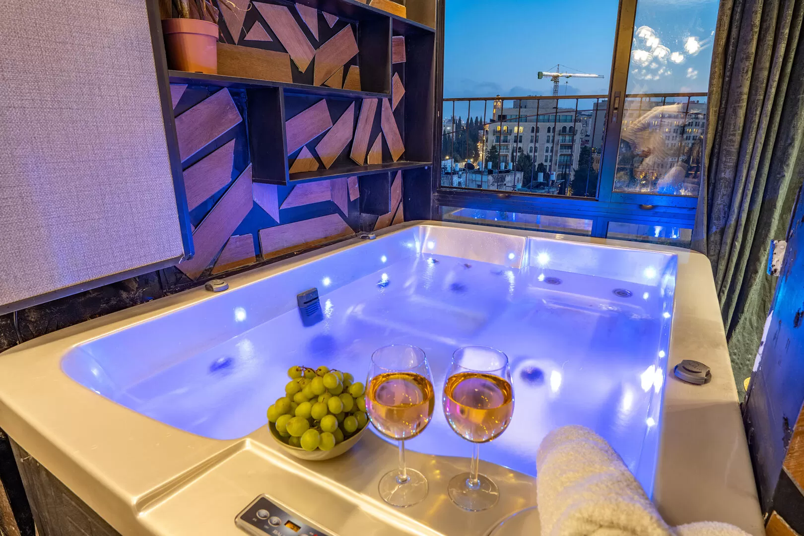 קשה להתעלם מהג'קוזי הגדול שממוקם מול הוויטרינה וצופה אל הנוף הירושלמי, ובאחת הסוויטות תמצאו בסמוך אליו גם ערסל מעוצב וכיפי.