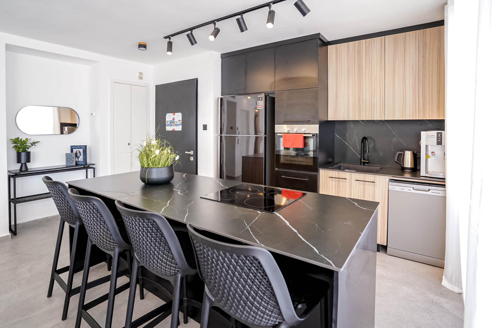 בדירה יש 5 חדרי שינה, 2 חדרי רחצה, סלון גדול, מטבח מאובזר לבישול ופינת אוכל. גולת הכותרת של הדירה היא המרפסת המשקיפה אל הים, שבה ניצבת בריכה פרטית, פינת ישיבה, ומנגל גז מקצועי. עוד בונוס נחמד היא המעלית שתוריד אתכם ישר בתוך הדירה.