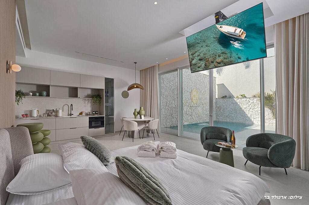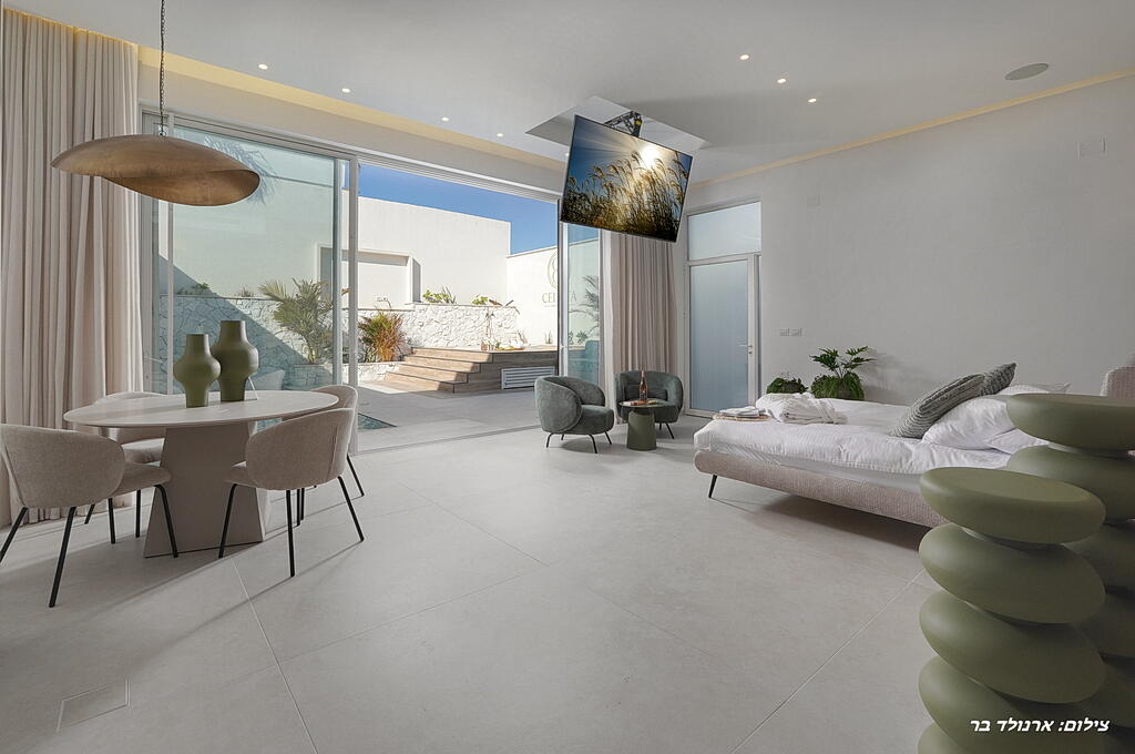 להחליק מהמיטה ישר לבריכה המחוממת – בסליסטה, הגבולות בין פנים לחוץ מטושטשים, העיצוב המגזיני הופך למציאות והאירוח מותאם בדיוק לצרכים שלכם