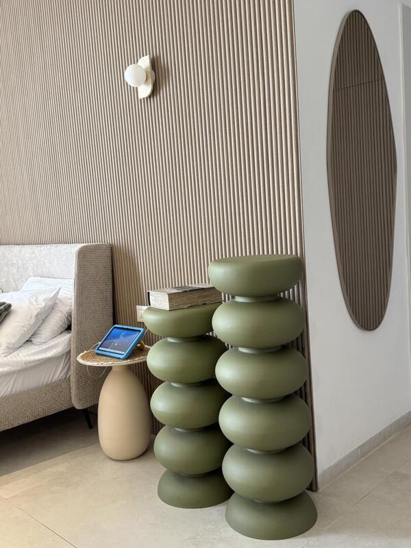 האווירה במקום מושפעת מתשומת לב לכל פרט. תאורת הלילה מדגישה את קווי העיצוב המודרני, והחומה מחופה באבן טבעית המשתלבת בסביבה. ריהוט מעוצב, גופי תאורה ייחודיים וחלוקים ממותגים מוסיפים לאווירת הבוטיק. בבריכה המחוממת יש מפל מים שמשלים את החוויה המרגיעה בחצרות הפרטיות