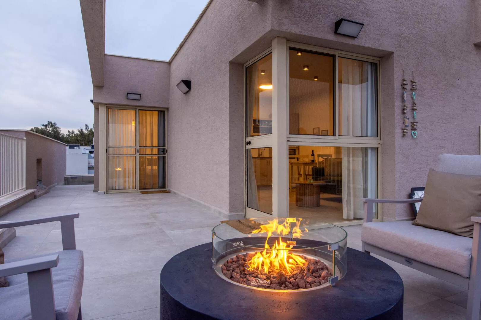 אש פתוחה: מותר להשתמש באח/מתקן מדורה חיצוני, אך רק לפי ההוראות, ותוך שמירה על כללי בטיחות