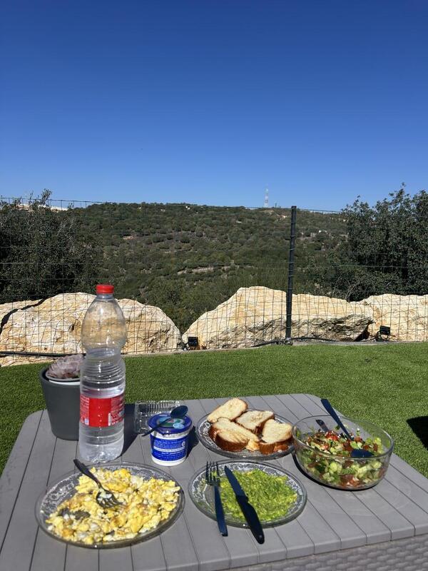 החיבור לטבע בולט כאן – בזכות הנוף, התאורה, הצמחייה והחומרים הטבעיים. האווירה בסוויטה עצמה מאוד נינוחה, מזמינה ונקייה ויזואלית, והחוץ משלים אותה עם מרחב מחולק היטב שמאפשר גם להירגע בג'קוזי וגם לשבת בערסל מול הנוף.