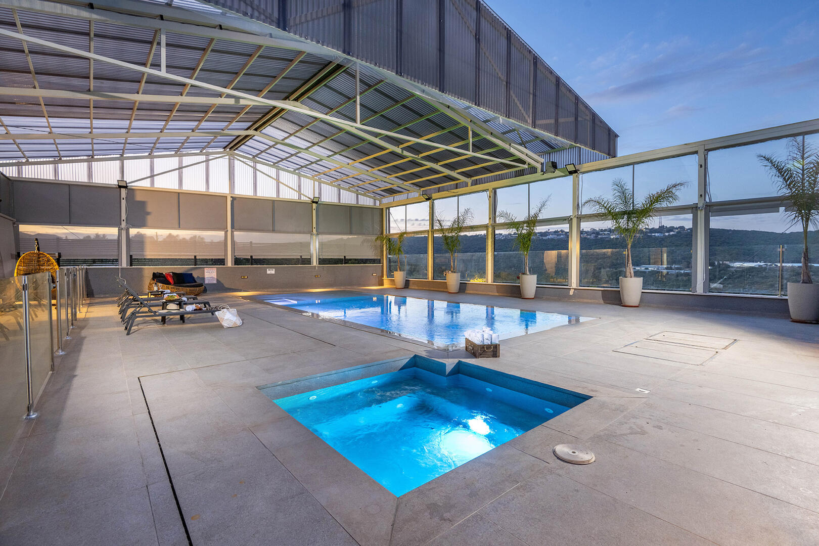 בחוץ מחכה לכם בריכה ענקית עם קירוי חשמלי ווילונות צד, ג'קוזי ספא, שולחן סנוקר, שולחן פינג פונג, מיטות שיזוף ופינות ישיבה. יש גם מטבח חוץ עם מקרר, מקפיא ומנגל פחמים אך בלי כיור.