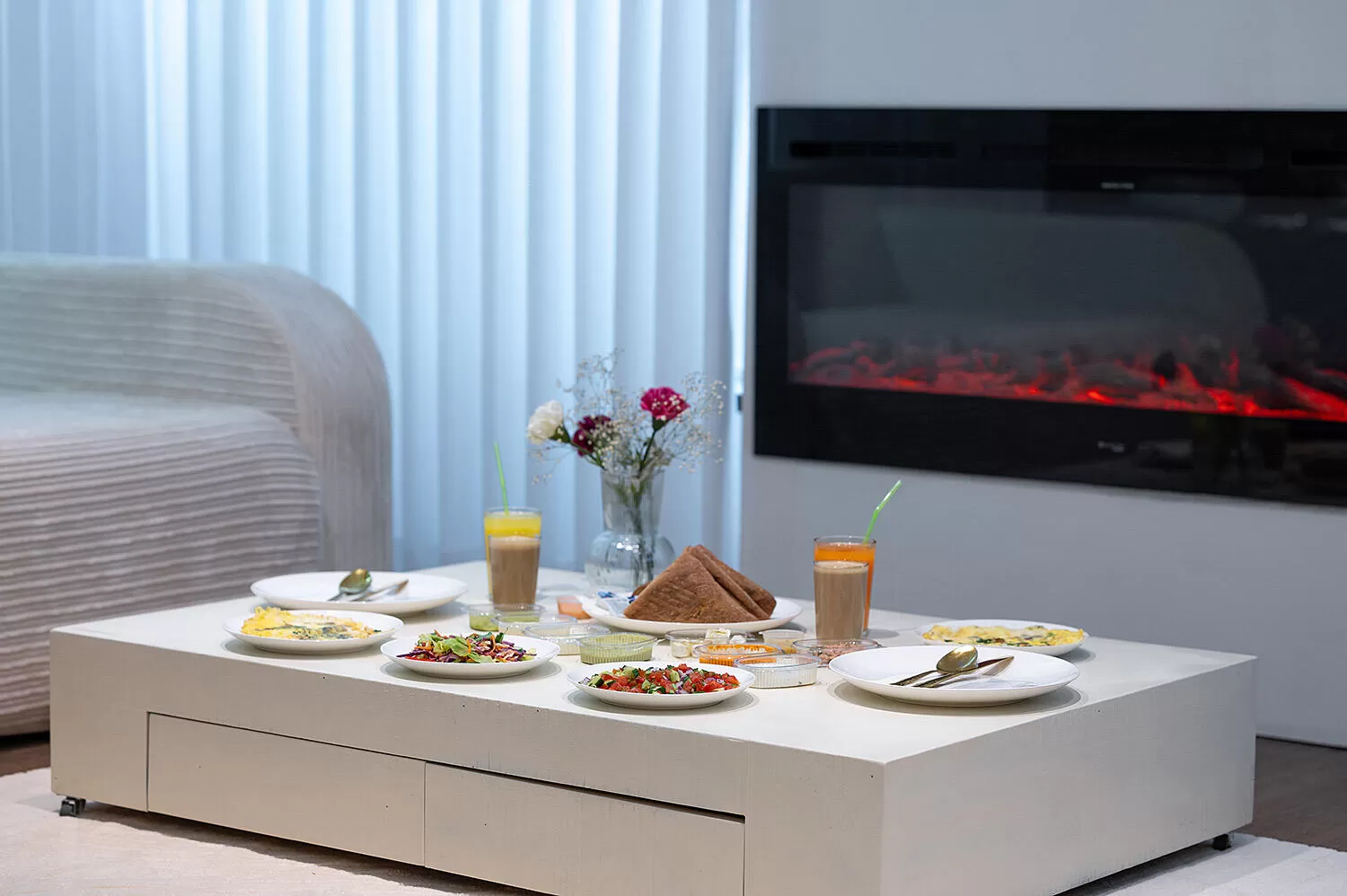 הסוויטה מרגישה כמו עולם קטן וסגור משלכם – שקטה, אלגנטית ותחומה היטב מהסביבה. התאורה הרכה, מערכת הסאונד והמעבר הישיר מהחלל הפנימי לבריכה – יוצרים יחד אווירה נעימה, אינטימית ומוקפדת