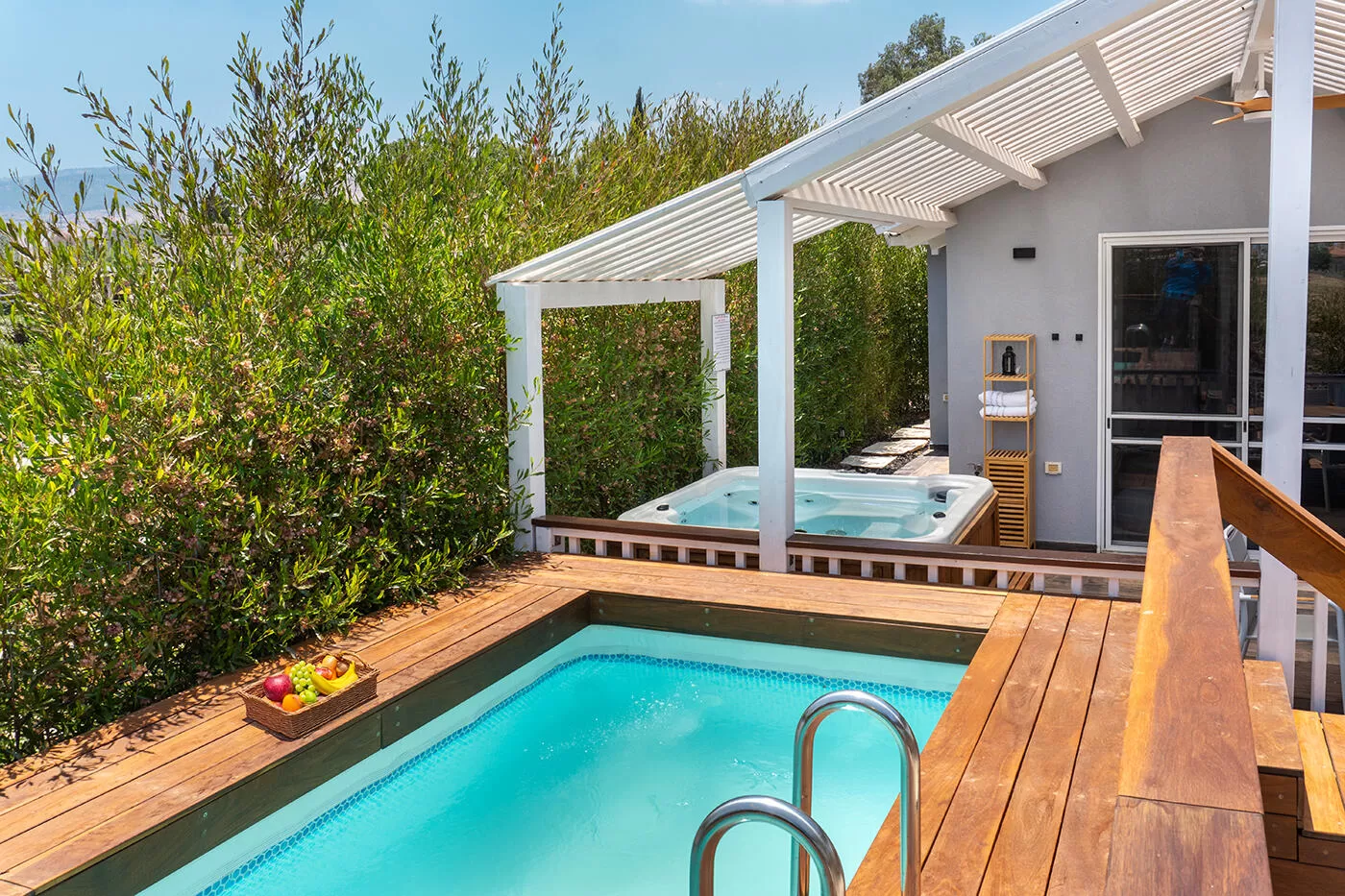 זו חופשה שמתאימה למי שרוצה לעצור רגע, לנשום, ולהינות מהשקט. הצמחייה הירוקה והטבע שסובבים את המתחם נותנים תחושת פרטיות מלאה. העיצוב המודרני והמינימליסטי משתלב באלגנטיות עם האווירה הכפרית – בלי להכביד, ובלי רעש ויזואלי מיותר.