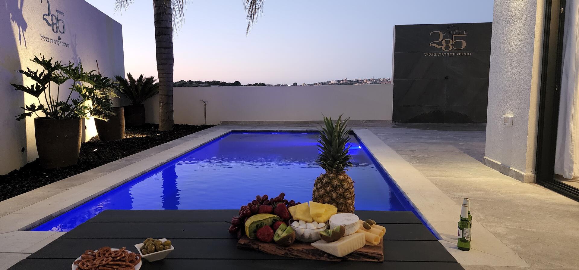 באזור החוץ תמצאו בריכה הצופה לנוף הפתוח, מקלחת חוץ, ערסלי נדנדה, פינת ישיבה, פינת אוכל, פינת מנגל עם כירת גז בה ניתן לבשל דברים קלים וטלוויזיה חיצונית. בפנים – חדר שינה זוגי עם שזלונג, אמבט stand alone, ספה מרווחת, טלוויזיה חכמה מתכווננת, חדר רחצה עם שני כיורים ומקלחון רחב ופתוח, ומטבחון מאובזר (ללא אפשרות בישול) ושולחן בר.