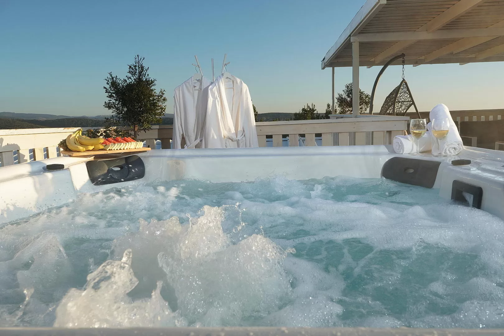 פרטי משלכם - ג'קוזי גדול באוויר הפתוח עם זרמי עיסוי מרגיעים