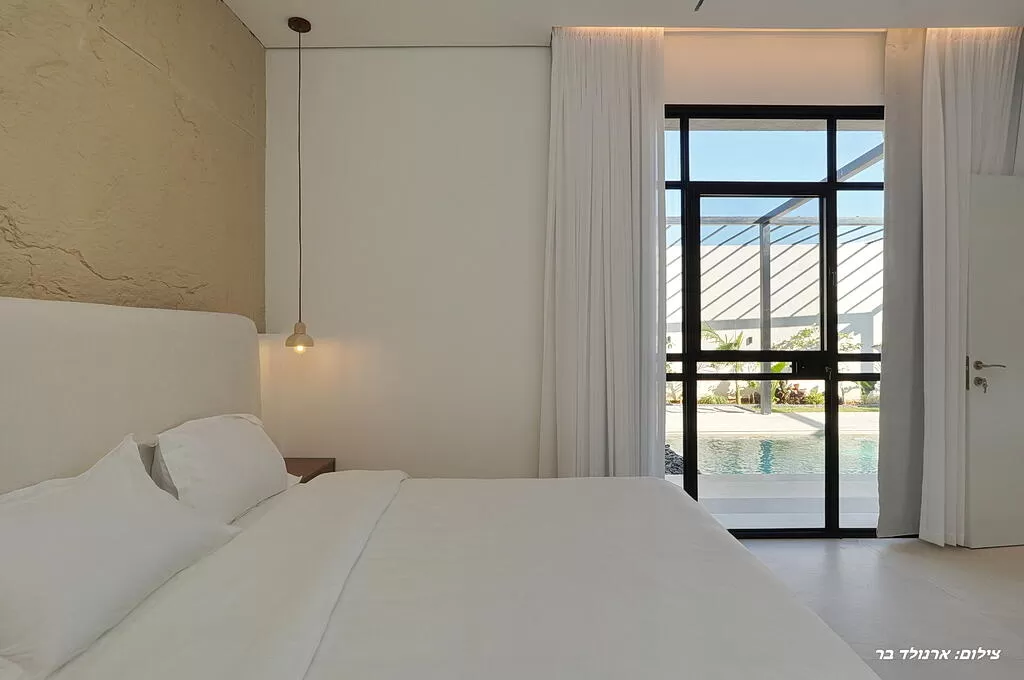 חומרי הבנייה, תשומת הלב לפרטים איכות החומרים והמרחב מייצרים אווירה רגועה ושלווה. העיצוב מאופיין בקווים נקיים, תאורה רכה, צבעים שקטים והמון אור שנכנס פנימה דרך פתחים בלגיים רחבים – השילוב הזה יוצר תחושת רוגע, סדר וניקיון