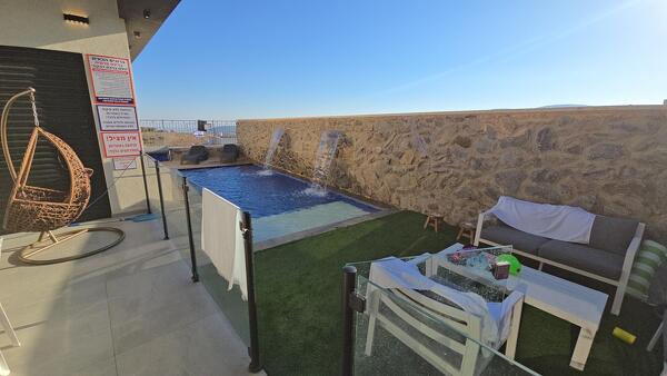 בווילה יש שלושה חדרי שינה זוגיים, אחד מהם הוא חדר מאסטר עם שירותים ומקלחת פרטיים, השני ממ"ד והשלישי חדר רגיל – כולם עם מיטות זוגיות רחבות, טלוויזיה וארון בגדים.חדר רחצה נוסף משרת את שאר האורחים.המטבח מאובזר ברמה גבוהה וכולל את כל מה שצריך, כולל תנור, מדיח, כיריים, מקרר גדול, תמי 4 ומכונת קפה.בסלון – טלוויזיה 60 אינץ' ופינת ישיבה מרווחת.במתחם החוץ תחכה לכם בריכה בגודל 8.5/3 עם משטח רביצה ומפלים – סופר פוטוגנית ומרעננת. קיימת גם גדר בטיחות מסביב לבריכה.