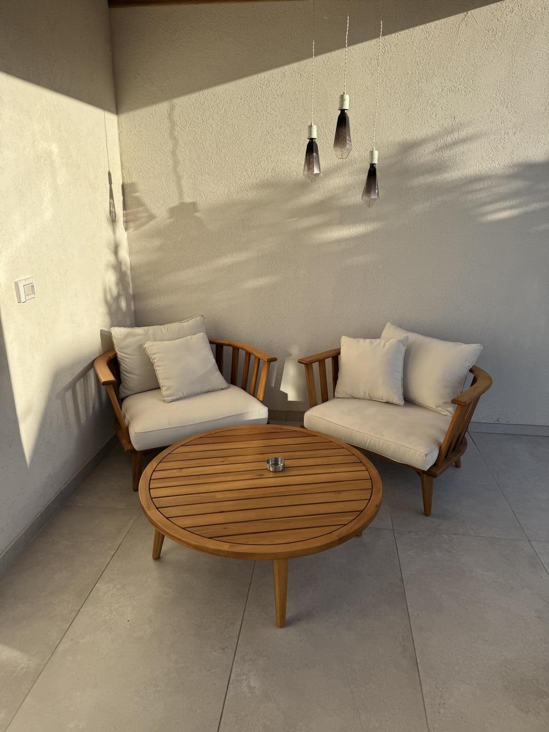 המטבחון מאובזר ומתאים להכנת קפה ונישנושים כולל בר מים, מכונת קפה, מיקרוגל ומקרר קטן (ללא בישול).במתחם החיצוני הפרטי ישנה בריכה מחוממת בחורף (בגודל 7×3.3 מ'), מיטות שיזוף ופינת ישיבה מוצלת תחת פרגולה. לצד הבריכה – מטבח חוץ עם גריל גז, כיור וכירת גז,המתאים לבישול מלא.