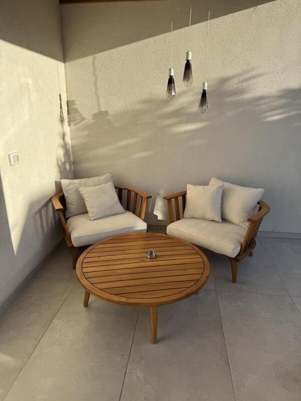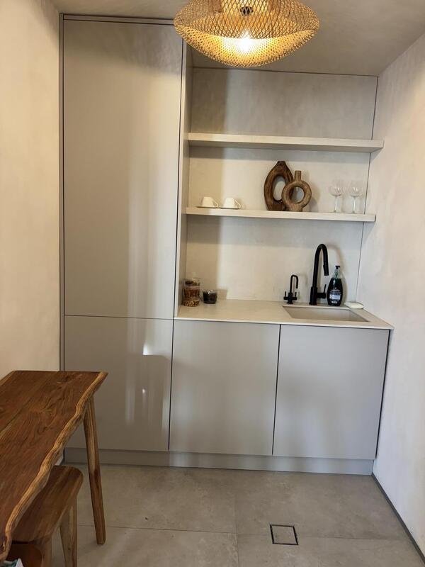 המטבחון מאובזר ומתאים להכנת קפה ונישנושים כולל בר מים, מכונת קפה, מיקרוגל ומקרר קטן (ללא בישול).במתחם החיצוני הפרטי ישנה בריכה מחוממת בחורף (בגודל 7×3.3 מ'), מיטות שיזוף ופינת ישיבה מוצלת תחת פרגולה. לצד הבריכה – מטבח חוץ עם גריל גז, כיור וכירת גז,המתאים לבישול מלא.