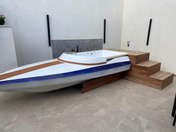 ברגע שנכנסים בשער הכניסה המרשים מגלים חצר פרטית לחלוטין עם בריכת שחייה מחוממת, ג’קוזי ספא גדול המעוצב כסירת מירוץ (!) ופינות ישיבה מעוצבות עם קמין חשמלי ופינת ישיבה מרווחת ומקורה עם טלויזה גדולה בצידי הבריכה.