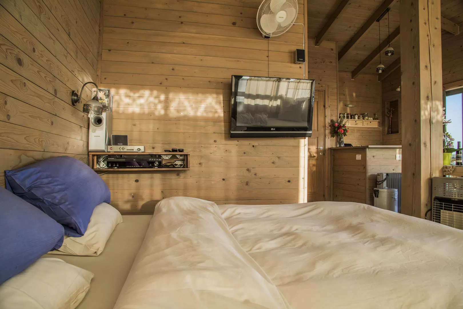ביחידה יש מערכת קולנוע ביתית עם טלוויזיה ''LCD  32 הכוללת DVD ומתכווננת ל 360 מעלות. מחוץ לכל יחידה יש מרפסת "דק" קטנה ובה מתנדנד לו ברוח הקלילה ערסל ישיבה איכותי.
