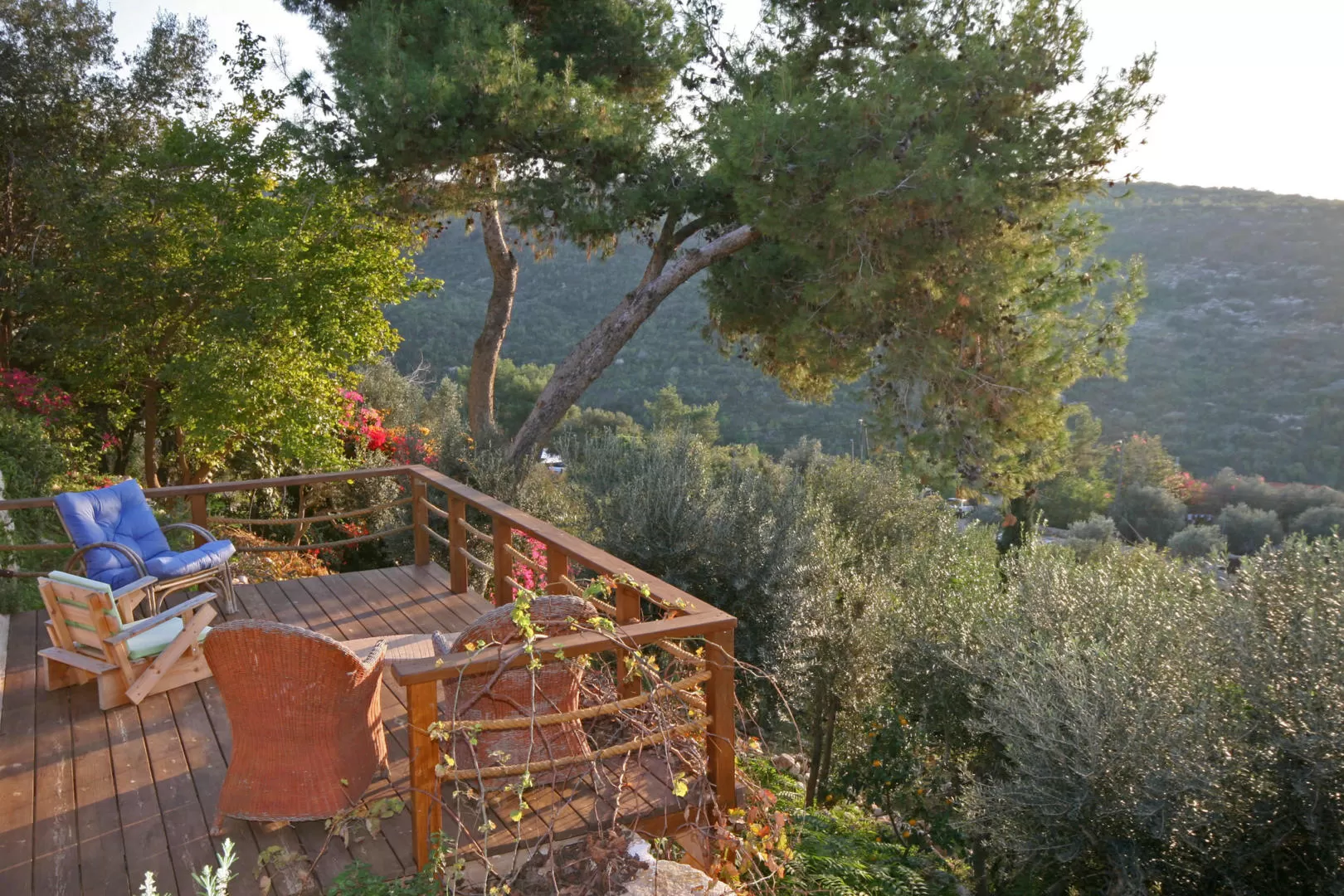 אחד מפניני הצימרים המיוחדים האלה בעין הוד הוא דק "תלוי", שנבנה ממש מעל הנוף. בעת השקיעה כל היופי הזה מתעצם ביתר שאת. האור מהשקיעה בעתלית מביא גל מגוון וכתום, הים צובע את רכס הכרמל בגוונים חמים של כתום וצהוב ואדום מג'נטה. כשתסיימו לבהות במבצר עתלית באופק, תפנו מבטכם לעבר גינת עצי הזית העתיקים בעלי הגזעים המתפתלים שמציירים על הדשא צורות אדומות. ברור מדוע קל כאן כל כך להיות אומנים.