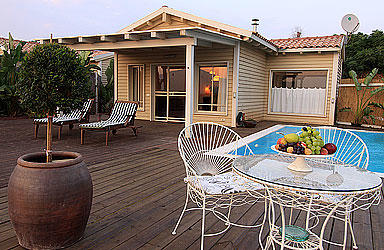 העיצוב המיוחד: שתי בקתות העץ בנויות בסגנון "New England" ומעוצבות באופן זהה. מעבר לניקיון, לעיצוב ולבחירה המדויקת של הריהוט והפרטים המשלימים, הצליחו תמי ויואב להעניק לבקתות אווירה שקטה ונינוחה, ספוגה באינטימיות מחבקת, ובו בזמן בתחושה פתוחה, "נושמת" ומשחררת.