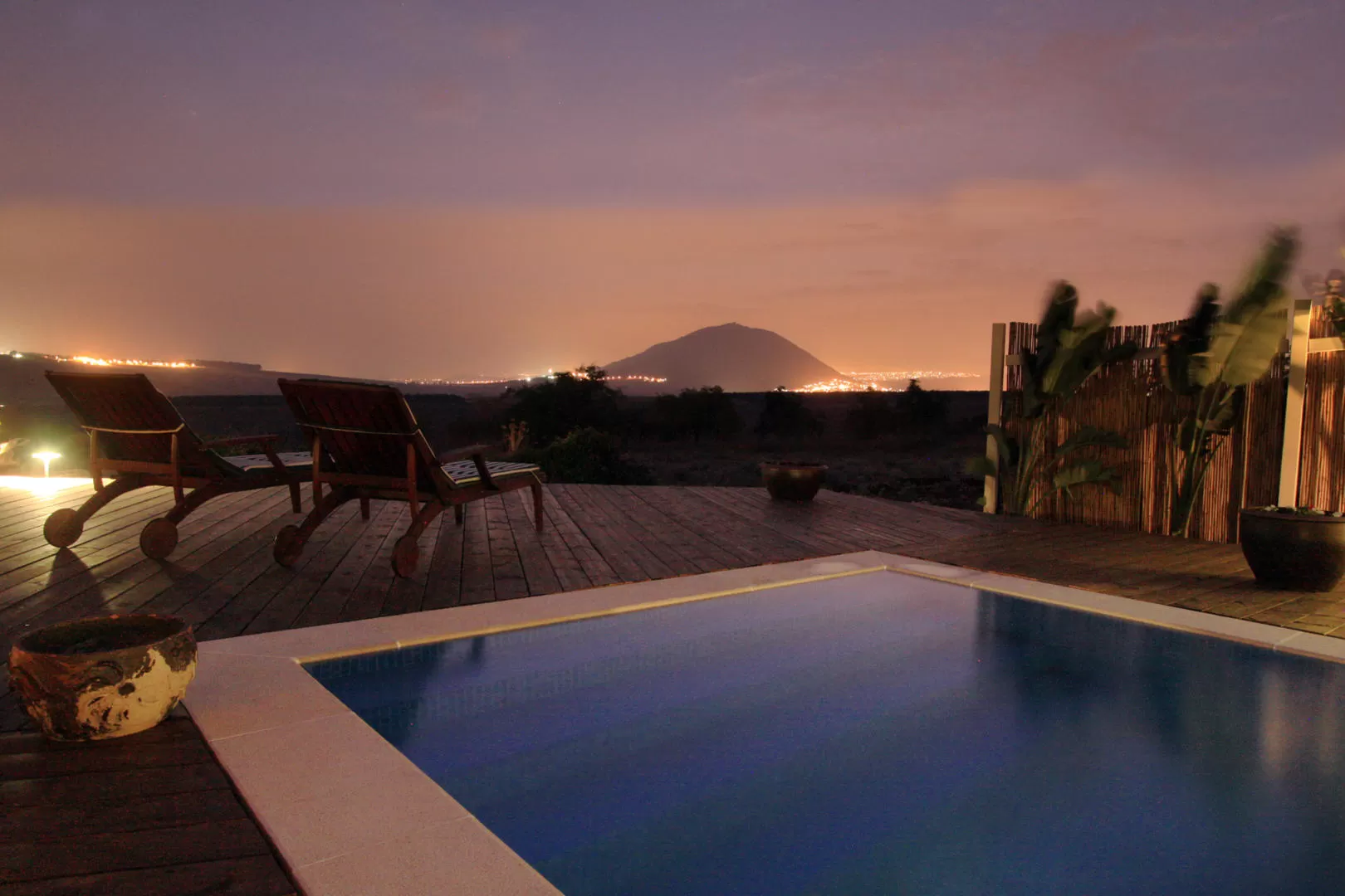 בריכה ענקית מחוממת, מבודדת ופרטית לכל בקתה. הבריכה מתהדרת בתעלת גלישה אשר מאפשרת גובה מים בגובה הפיתוח הסביבתי ומדרגות בנויות לנוחות מרבית. הבריכה פתוחה אל הנוף, מאפשרת אינטימיות מוחלטת ואפופה בתחושת חופש ואווירה רומנטית משחררת.