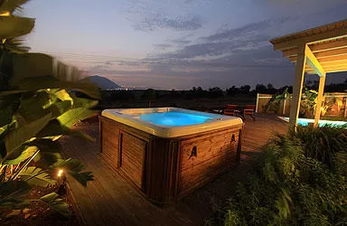 ג'קוזי ספא גדול מאוד, פרטי לכל בקתה. ג'קוזי משוכלל וחדשני המיועד לחמישה אנשים (בפועל "יצטופפו" בו רק שניים...), ממוקם על "דק" העץ של מרפסת הבקתה- לא רחוק מהבריכה הפרטית- גם הוא פונה אל אותו הנוף המרהיב.