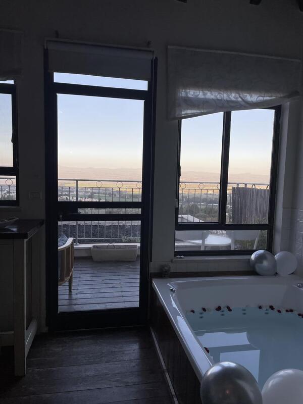 על במה מוגבהת שוכנת מיטה כפרית מאסיבית, ג'קוזי גדול במיוחד ממוקם בסמוך לחלון הצופה לנוף. קיר לבנים ייחודי הממוקם במרכז החלל מיועד לקמין ומוסיף  "טאץ'" עיצובי מעניין.
