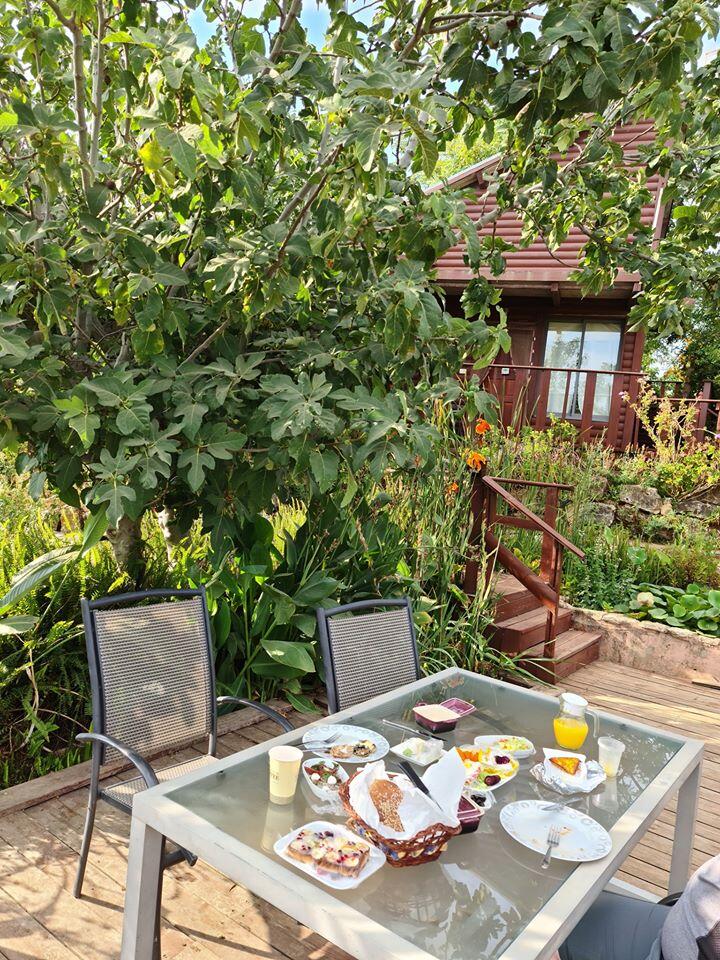 בהגעה לצימר הופתענו לגלות את החצר המטופחת בה שוכנים שני צימרים, מוסתרים מהרחוב ועם נוף שלא נגמר. הצימר היה בדיוק כפי שתואר באתר, המארחים דאגו לכל הדברים ואפילו פינקו בהפתעה אחה"צ עם משהו מתוק ארוחת הבוקר ראויה לציון נפרד וארוחת ערב שהזמנו במקום היתה גם היא מעולה