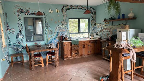 עוד דבר שיכול לעזור זה הגילוי שאיזמרגד יושב בקצה הישוב, על נחל כזיב עם נוף פסיכי למונפורט, לגליל ולעוד מלא מקומות שאתם לא מכירים. יואל, המארח, מוביל אותי לבית בגווני חמרה נעימים ומכניס אותי לחלל בגודל שנדיר למצוא בצימרים (70 מ"ר!). יואל מספר לי שזה הצימר היחיד שלהם ושהוא ממוקם מעל הבית. "איך מעל הבית?" אני מופתע: לא עליתי אפילו מדרגה אחת בדרך. מסתבר שהצימר הוא בגובה פני הרחוב, כך שבית המארחים מסתתר למטה במדרון ולא מורגש כלל.