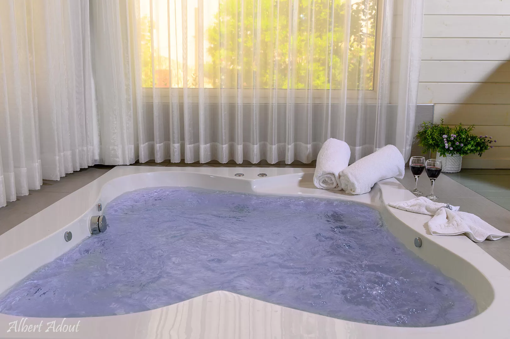 בחוץ מראה לי אנט את הבריכה המשותפת הבנויה פסיפס (צמודה לבית המארחים) ואני מגלה שהגינון לא נעצר בבקתות - מסביב פזורים שז-לונגים וביניהם עציצים וצמחים מטפסים. הבריכה מחוממת בפאנלים סולאריים, וזה אומר שאתם צריכים לסמוך על השמש. אם היא מבריזה במקרה, אפשר לקפוץ לג'קוזי ספא הצמוד ולהתחמם.