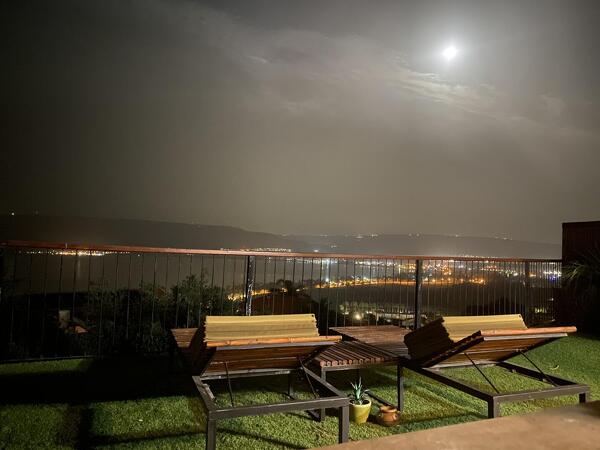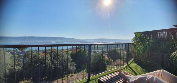 על מרפסת ה"דק" החיננית מרגישים את תחושת הגובה. כך בטח מרגישה ציפור אשר עצרה לנוח לשנייה ומביטה במרחבים העצומים לפני המעוף הבא.