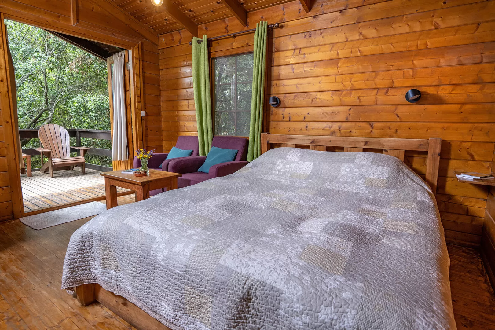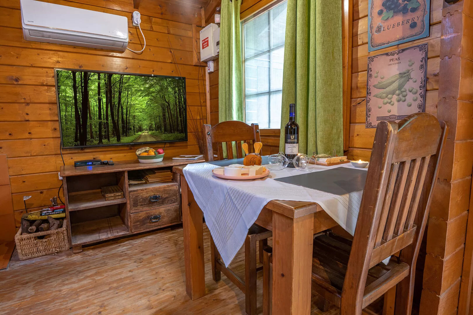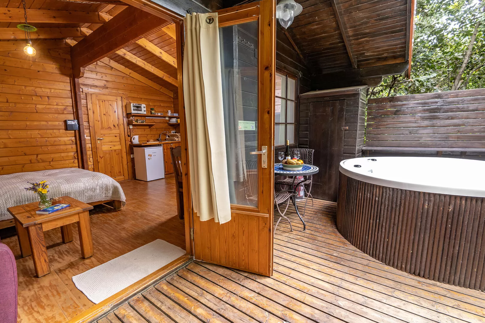 זה בטח עניין של טעם אישי, אבל אחרי קבלת פנים כזאת אני כבר בעד המקום הזה. כשאני נכנס ה'בעד' מתחזק בזכות 'דק' כניסה עם פינת ישיבה וג'קוזי ספא שממש נוגעים בעצים הסוגרים סביב. בפנים מתגלה בקתת חלל אחד אינטימית ונעימה עם כל מה שצריך, כולל מסך LCD, מטבחון שמתאים גם לבישול, פינת ישיבה, חדר רחצה וגם סאונה זוגית מרווחת לימים הקרים.
