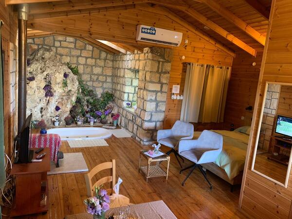 בקתת "בית היערן" משדרת המון פשטות, והיא מתאימה גם למשפחה, היות ויש גלריה עם 2 מיטות נוספות. בכניסה יש מרפסת ופינת ישיבה נעימה. כמו כן יש ח' נוסף ממש בכניסה שמשמש כ"חדר ג'קוזי". בבקתה עצמה יש חלל כפול עם גלריה, ותמצאו בה ספה, שולחן אוכל ומטבחון. ח' הרחצה צמוד. ח' השינה הזוגי נפרד, ויש בו מיטה זוגית אינטימית ברוחב 140 ס"מ.