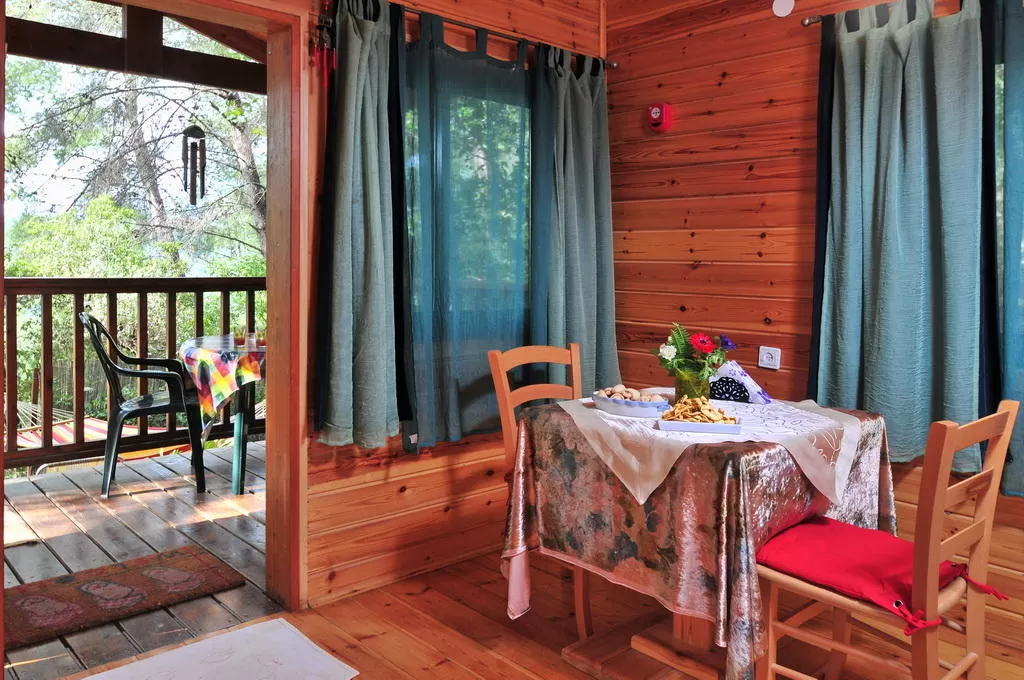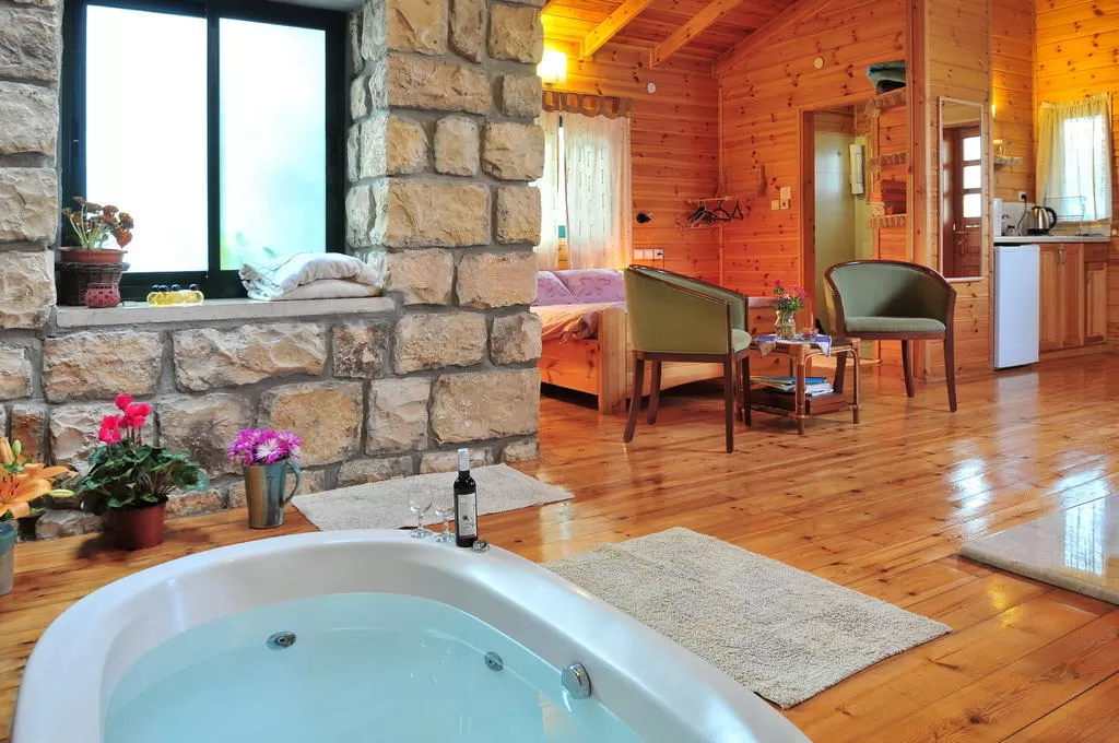 בקתת "בית היערן" משדרת המון פשטות, והיא מתאימה גם למשפחה, היות ויש גלריה עם 2 מיטות נוספות. בכניסה יש מרפסת ופינת ישיבה נעימה. כמו כן יש ח' נוסף ממש בכניסה שמשמש כ"חדר ג'קוזי". בבקתה עצמה יש חלל כפול עם גלריה, ותמצאו בה ספה, שולחן אוכל ומטבחון. ח' הרחצה צמוד. ח' השינה הזוגי נפרד, ויש בו מיטה זוגית אינטימית ברוחב 140 ס"מ.