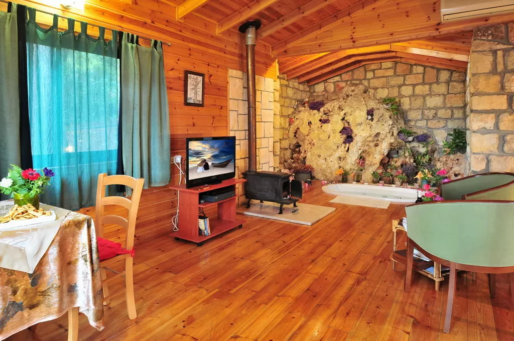 כאשר הקימו עדינה ואליעזר את בקתת ה"ג'קוזי בסלע", הם נתקלו בסלע גדול ועקשן במיוחד בלוקיישן הנהדר שנמצא בתוך החורשה הפרטית בנחלתם. הם חושבים, והחליטו למזל כולנו לשלב את הסלע בתוך הבקתה, ומיקמו שם (כמובן) ג'קוזי זוגי אינטימי. התוצאה לא פחות ממדהימה. שתי בקתות נעימות יש כאן, במתחם הרומנטי הזה שמשדר פשטות ואיכות של "פעם", לפני שמירוץ האבזור המטורף התחיל מסביב. ממש שמורת טבע רומנטית במחירים מאוד משתלמים.
