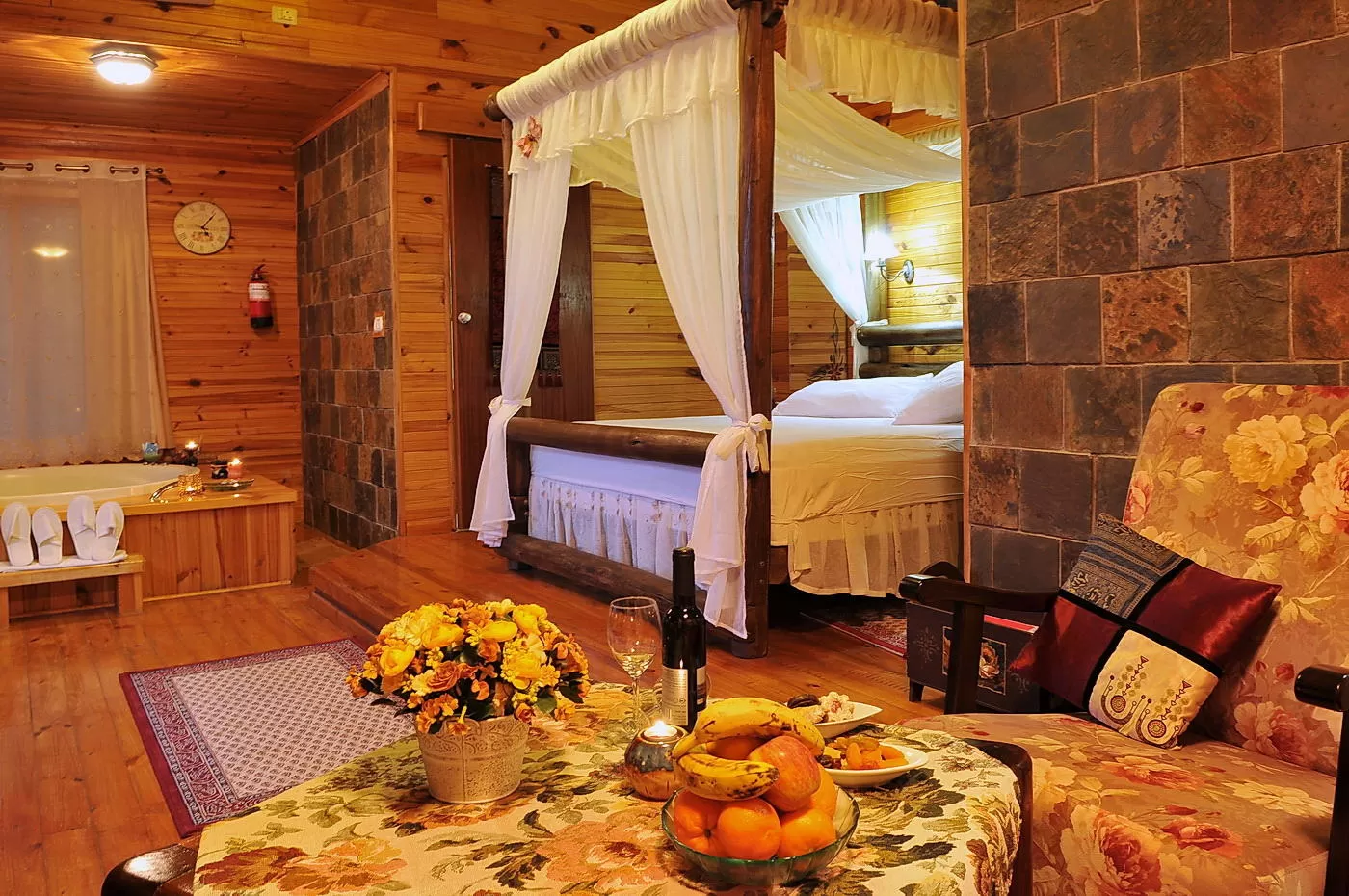 לבקתות מרפסת אישית זוגית בעלת אווירה נעימה וביתית. את תמונת המרחבים הפתוחים הנשקפים מהמרפסת מקשטים גם גגות הבתים של הישוב הסמוך. לבקתות מוצמדת בריכה מחוממת פרטית עם משטח "דק" צמוד ולסוויטה מוצמדת בריכת שכשוך מחוממת.