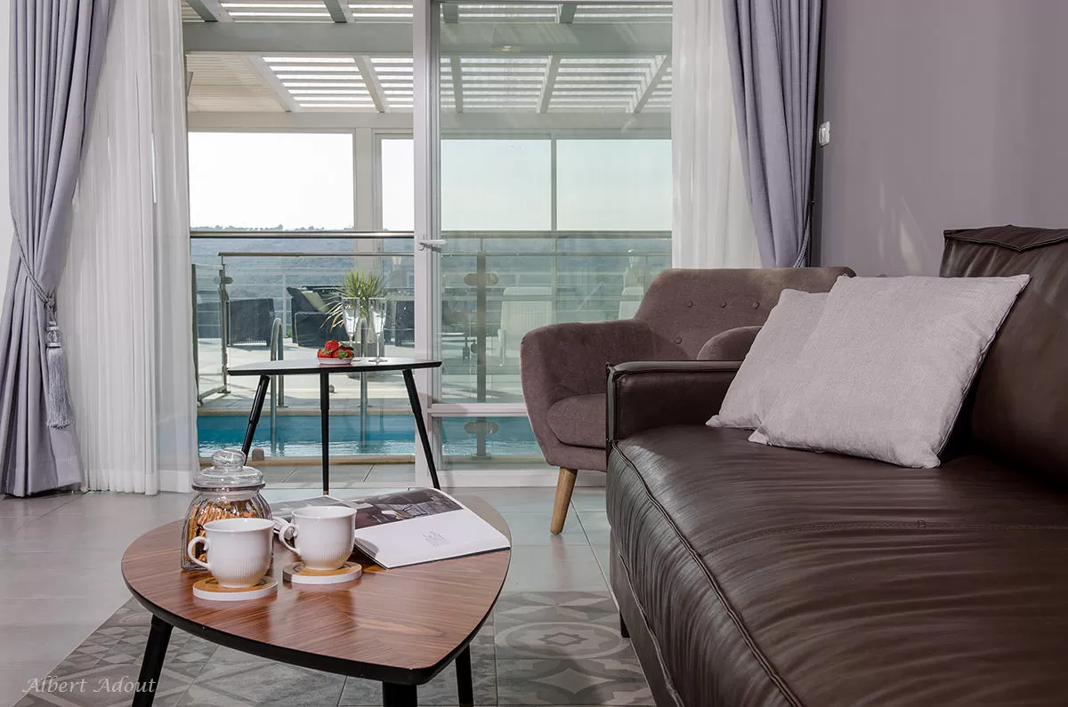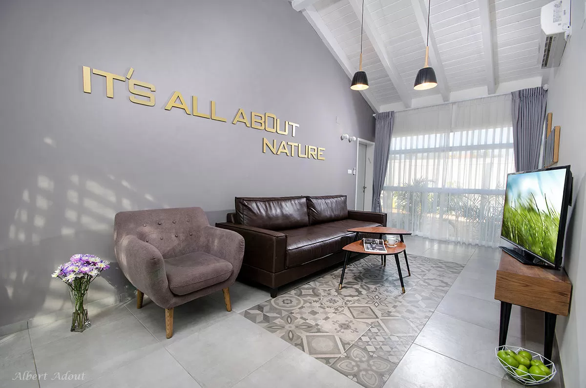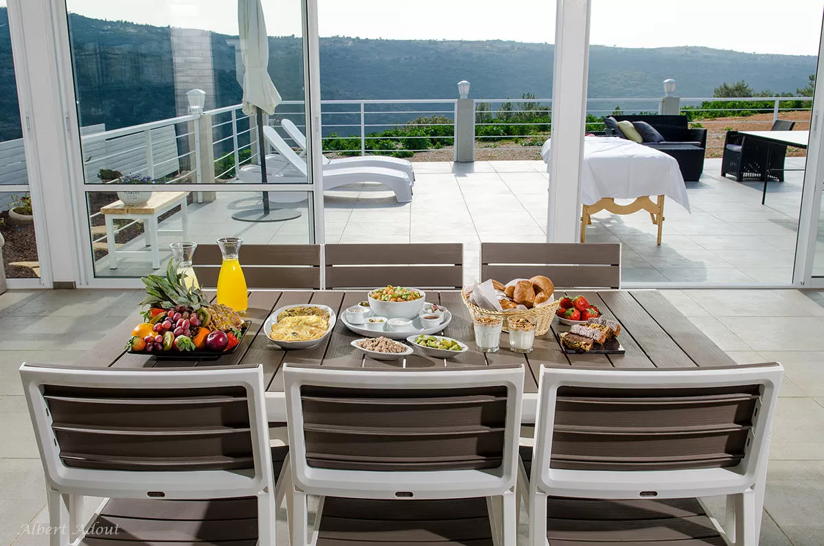 הוילה מתפרסת על השטח כולו- לא תמצאו כאן בית מארחים שצופה עליכם. היא מכילה 3 חדרי שינה ומיועדת לאירוח של עד 3 זוגות. כמו כן, ניתן לשכור רק חלק מהוילה ולקבל ח' שינה אחד, מטבח סלון ופינת אוכל.