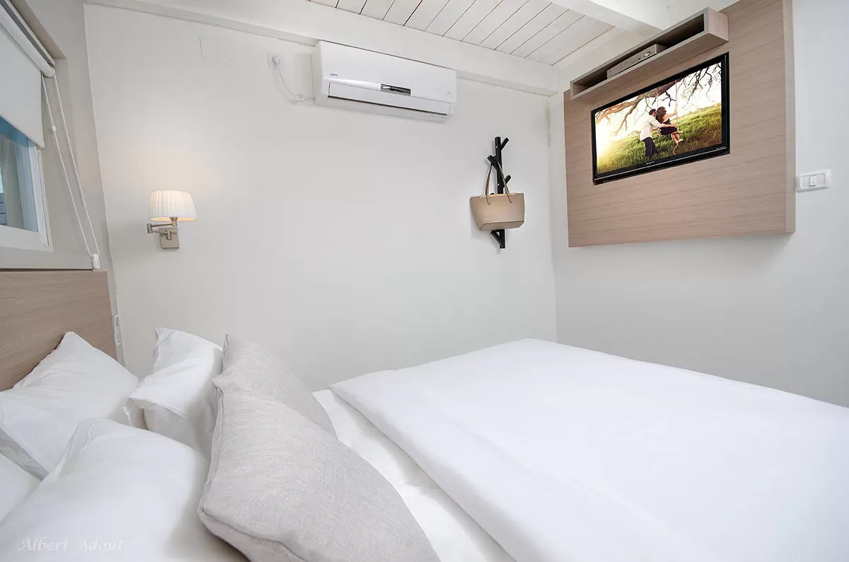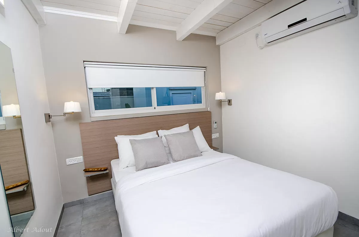 סמוך לכניסה שוכן ח' השינה הראשון, וצמוד לסלון שוכנים 2 ח' שינה נוספים, הפתוחים בויטרינה אל הבריכה. אחד מהם מכיל גם גלריית שינה צמודה בנוסף למיטה הזוגית.. לכל חדרי השינה בוילה יש חדרי רחצה צמודים. יש מחסור מסויים במקומות אכסון והמיטות אינן גדולות (1.40), אך העיצוב הנעים משרה תחושה איכותית מאוד.