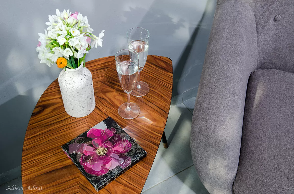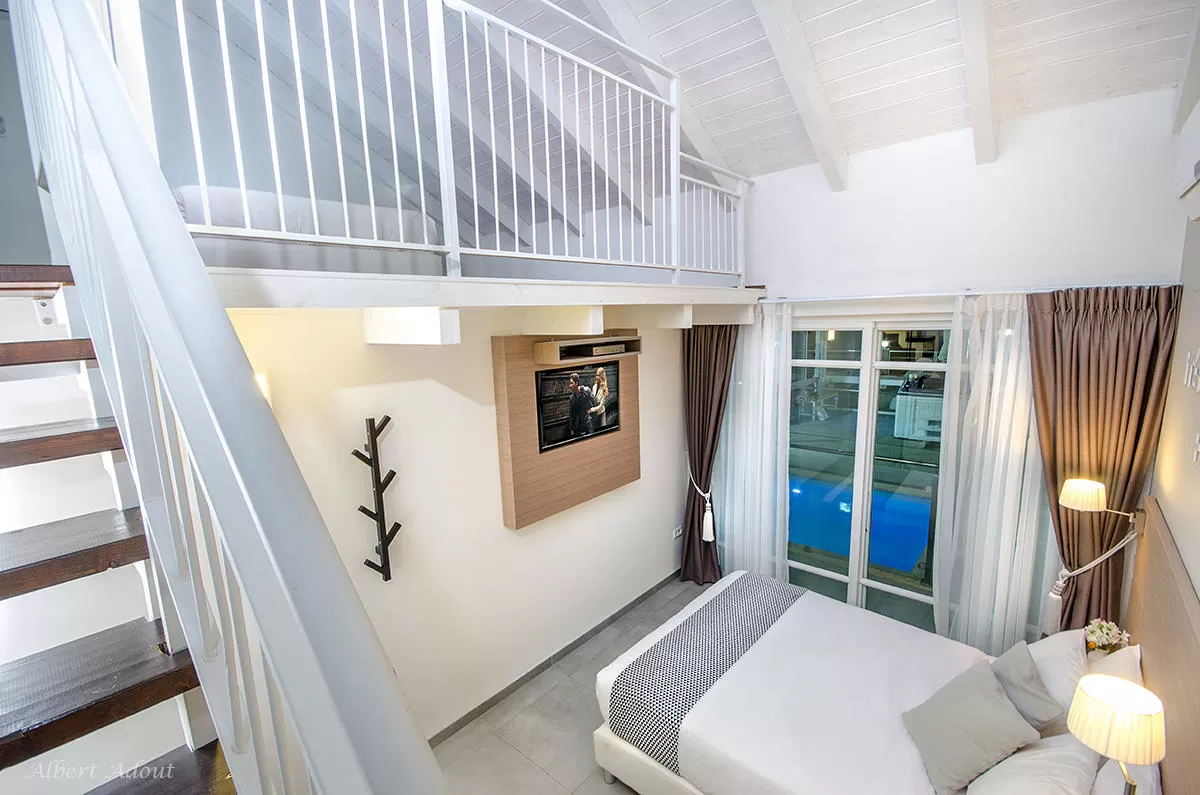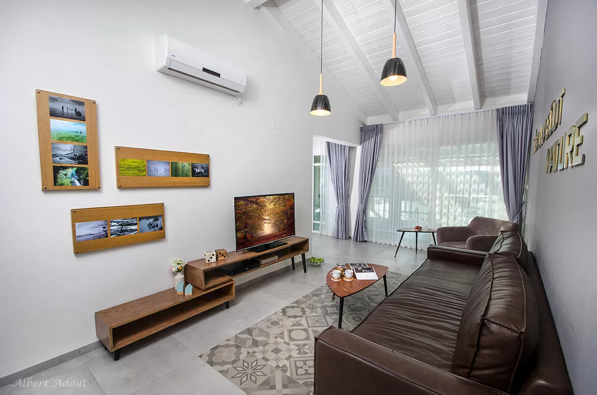 עיצוב הפנים נעשה עם המון תשומת לב לפרטים, והמון השקעה בחשיבה האסתטית. כאמור, החללים עצמם אינם גדולים והתכנון האדריכלי מכוון את האורחים לשהיה בחוץ במרפסת המקורה, על מנת להינות מהיתרונות האמיתיים של המיקום, הבריכה והג'קוזי. החלל הציבורי מכיל מטבח מאובזר (ניתן לבשל), שולחן אוכל וסלון עם שידת טלוויזיה ויציאה לבריכה. גלריה פתוחה ממוקמת מעל המטבח.