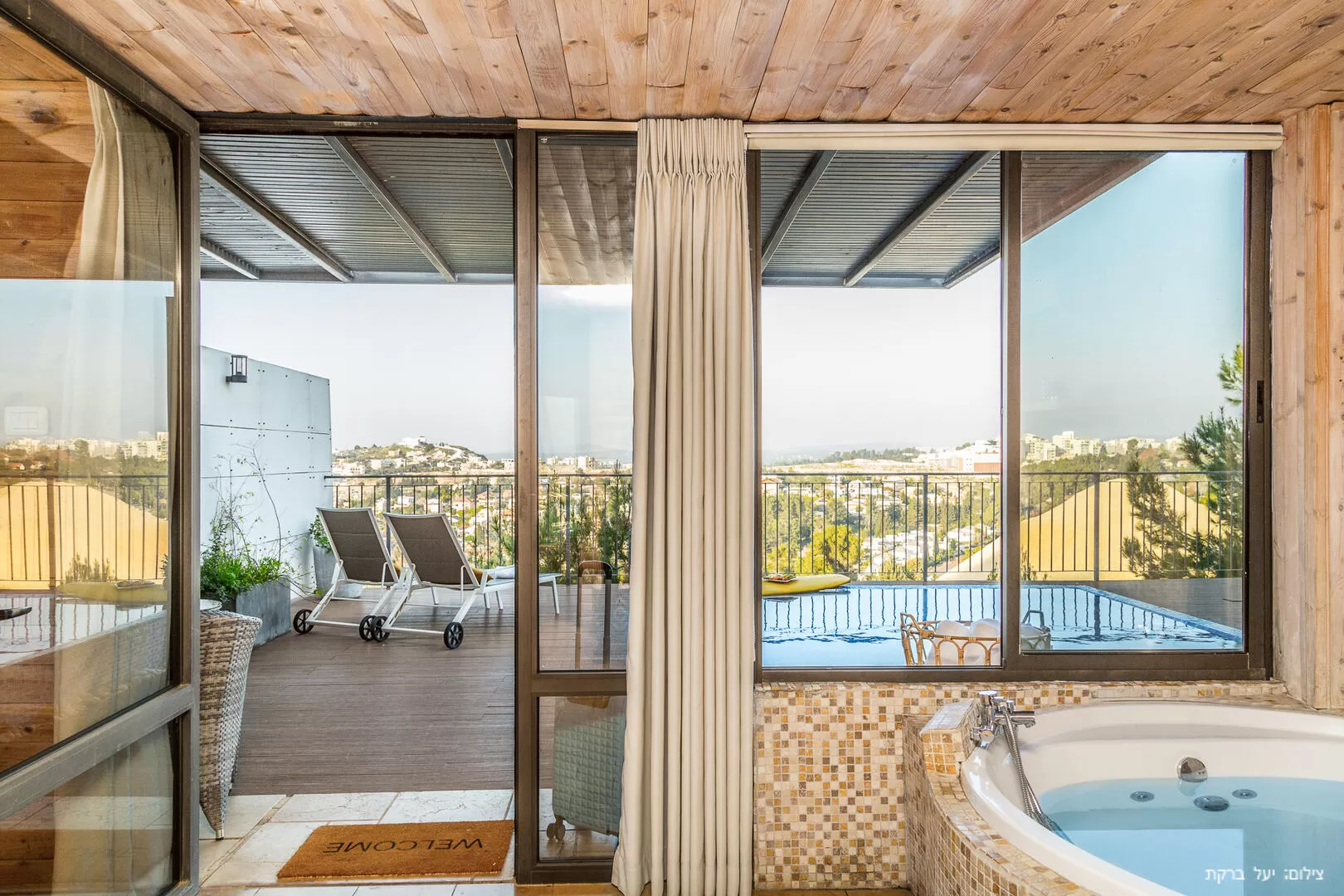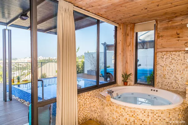 - ג'קוזי עגול (קוטר 180) צמוד לויטריה עם נוף פתוח