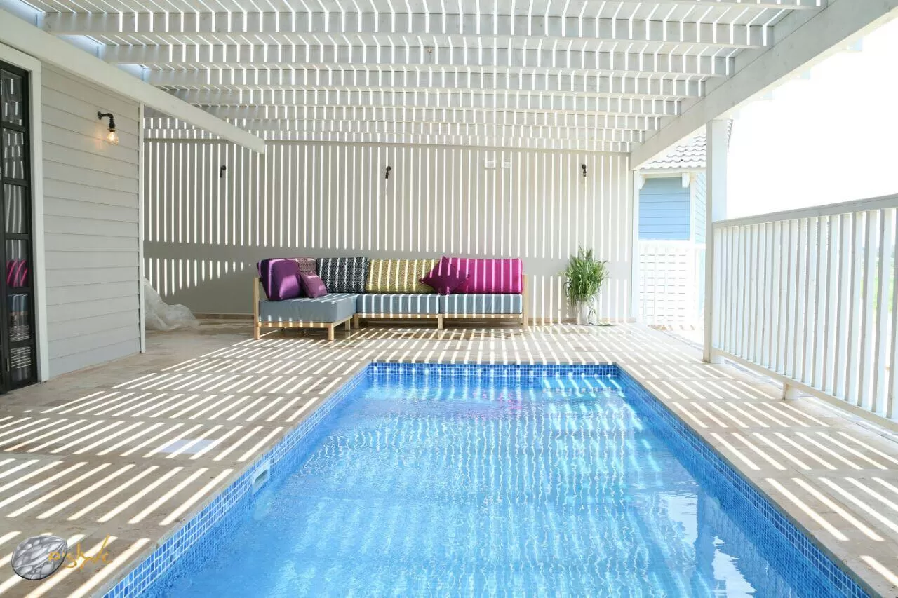 לקוטג' מרפסת "דק" מרווחת, עם בריכה פרטית מחוממת בגודל מכובד מאד וגדר בטיחותית, פינת ישיבה יפייפיה, ג'קוזי מפואר, וגם כיור חיצוני ופינת בישול מאד נוחה (יש גם מטבחון בתוך הצימר אך אין אפשרות לבשל).