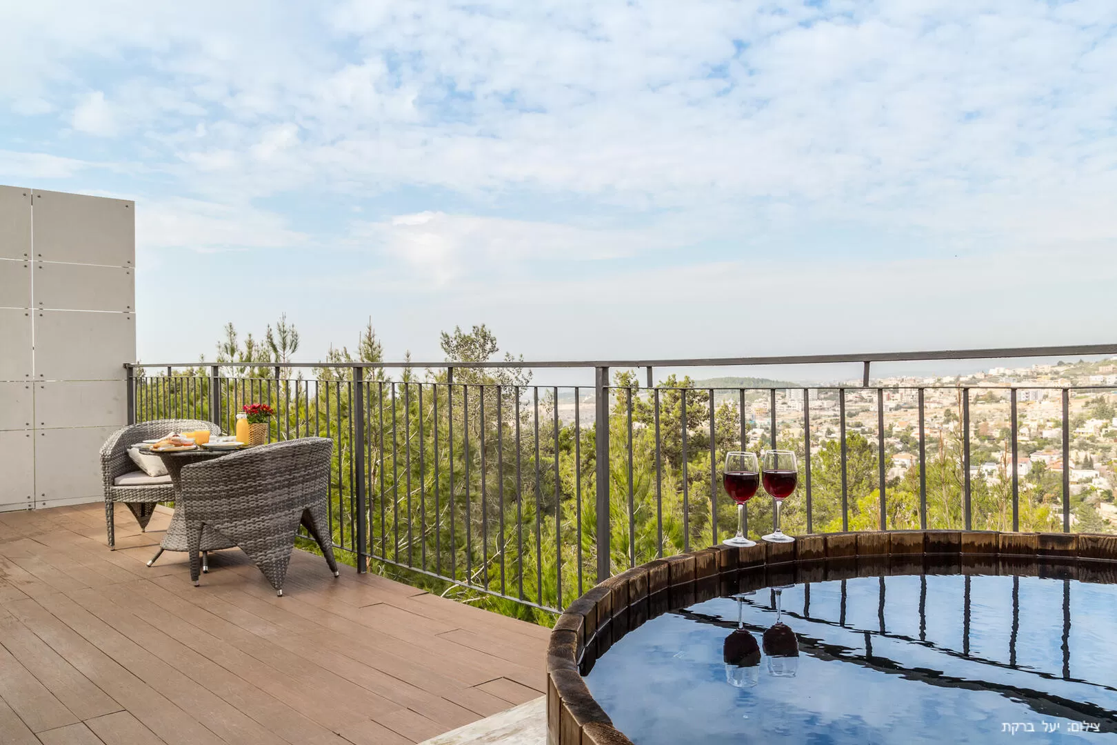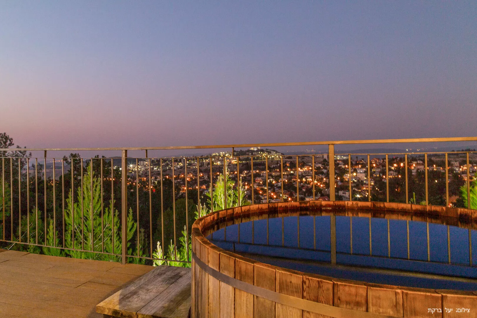 - ג'קוזי עגול (קוטר 180) צמוד לויטריה עם נוף פתוח