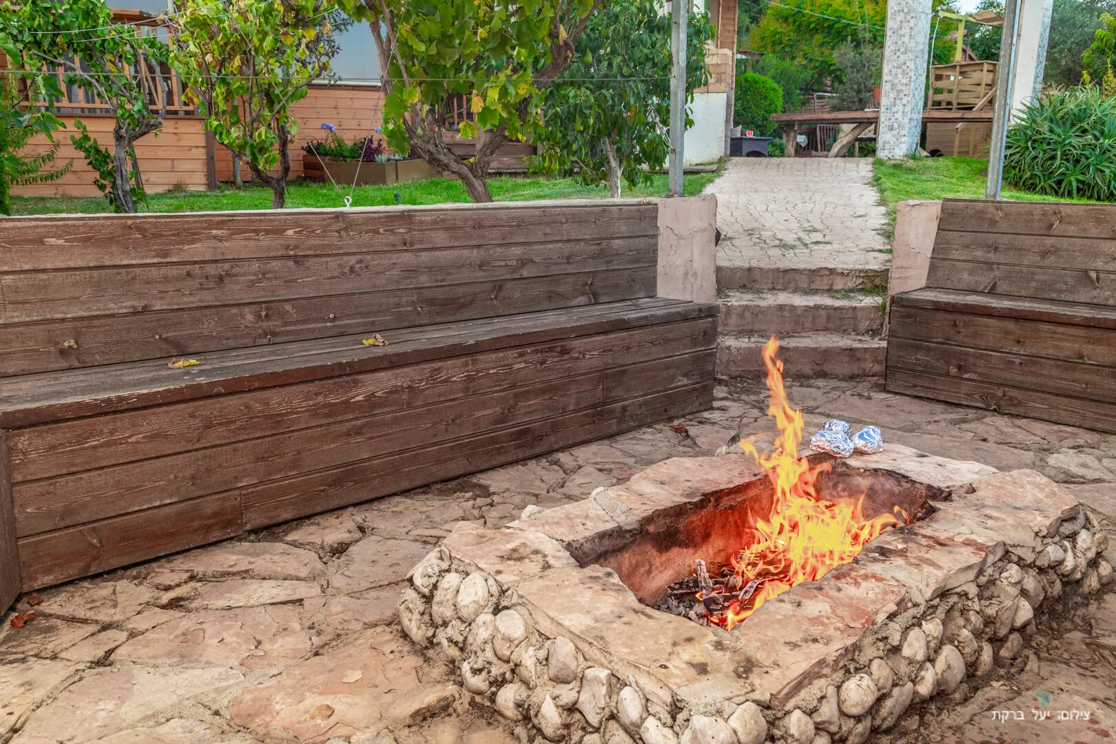 - פינת מדורה פינת מדורה גדולה מגודרת ומוקפת בספסלי ישיבה מעץ