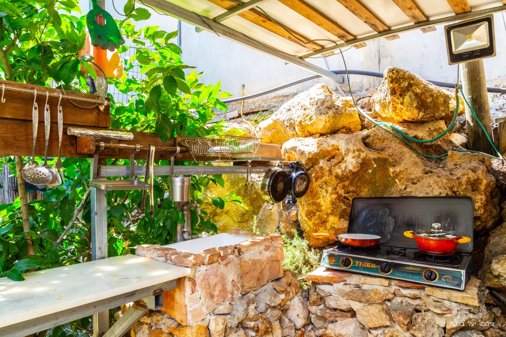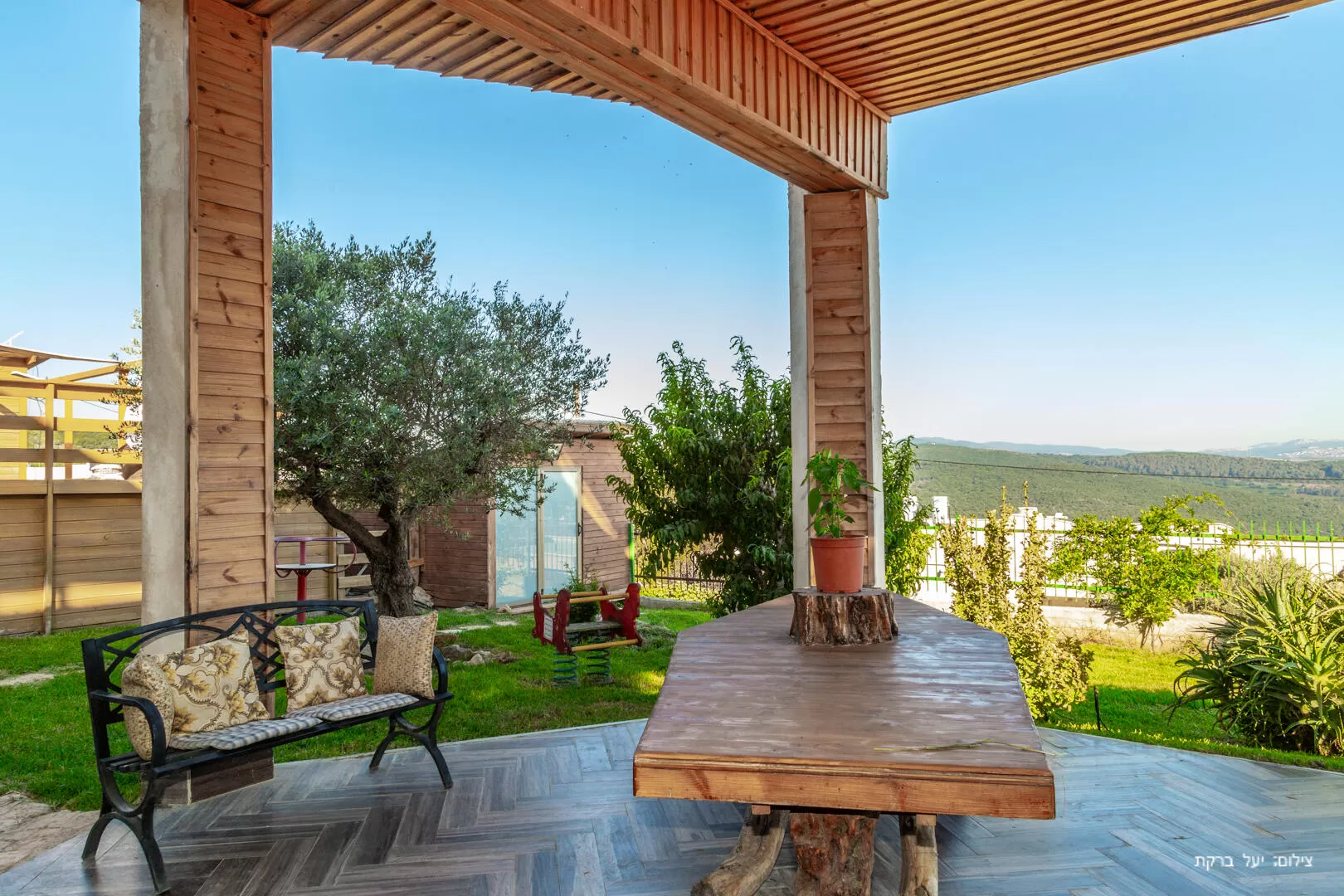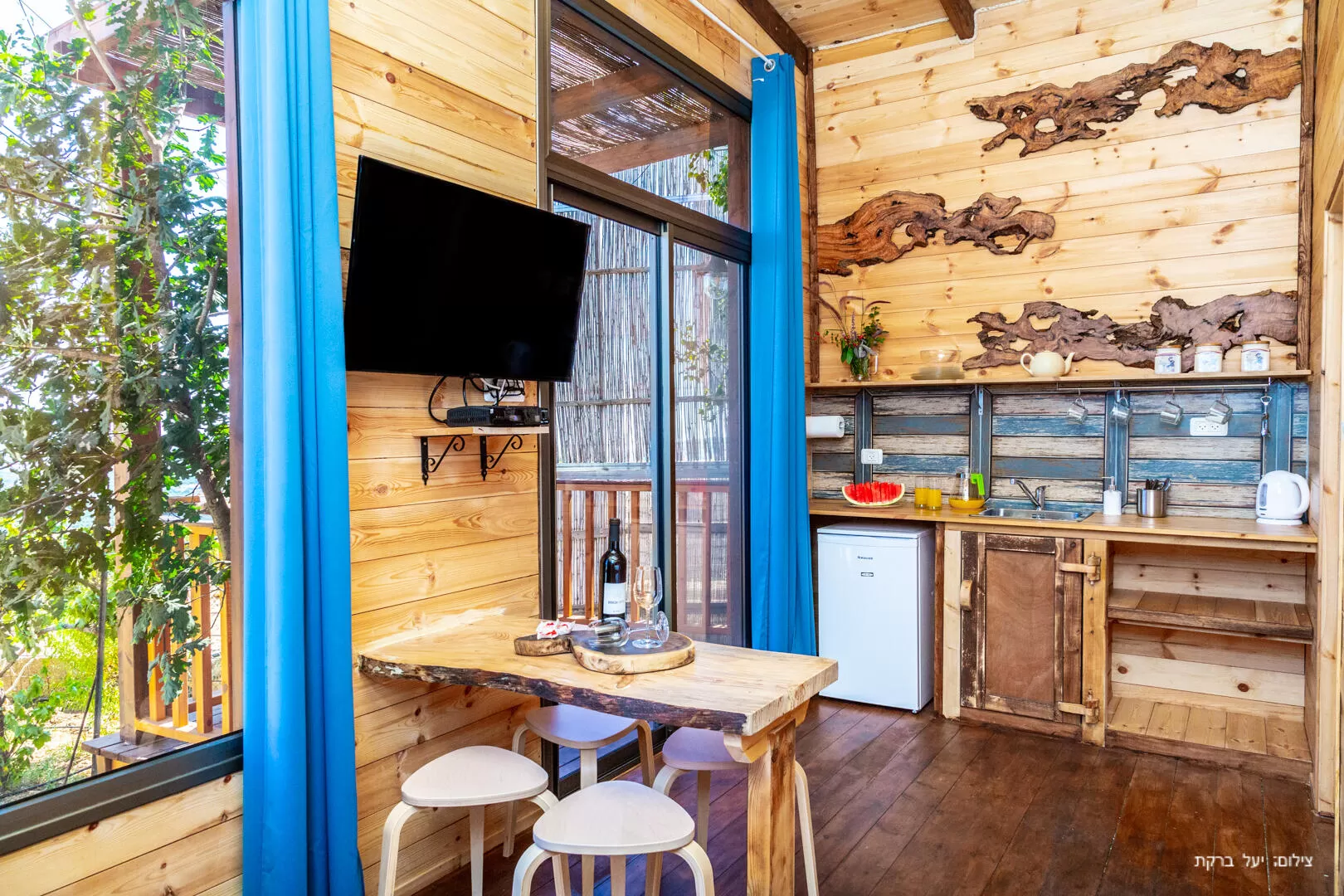 - פינת אוכל בתוך הבקתה- מתאים ל-4 סועדים, מחוץ לבקתה מתאים ל-12 סועדים